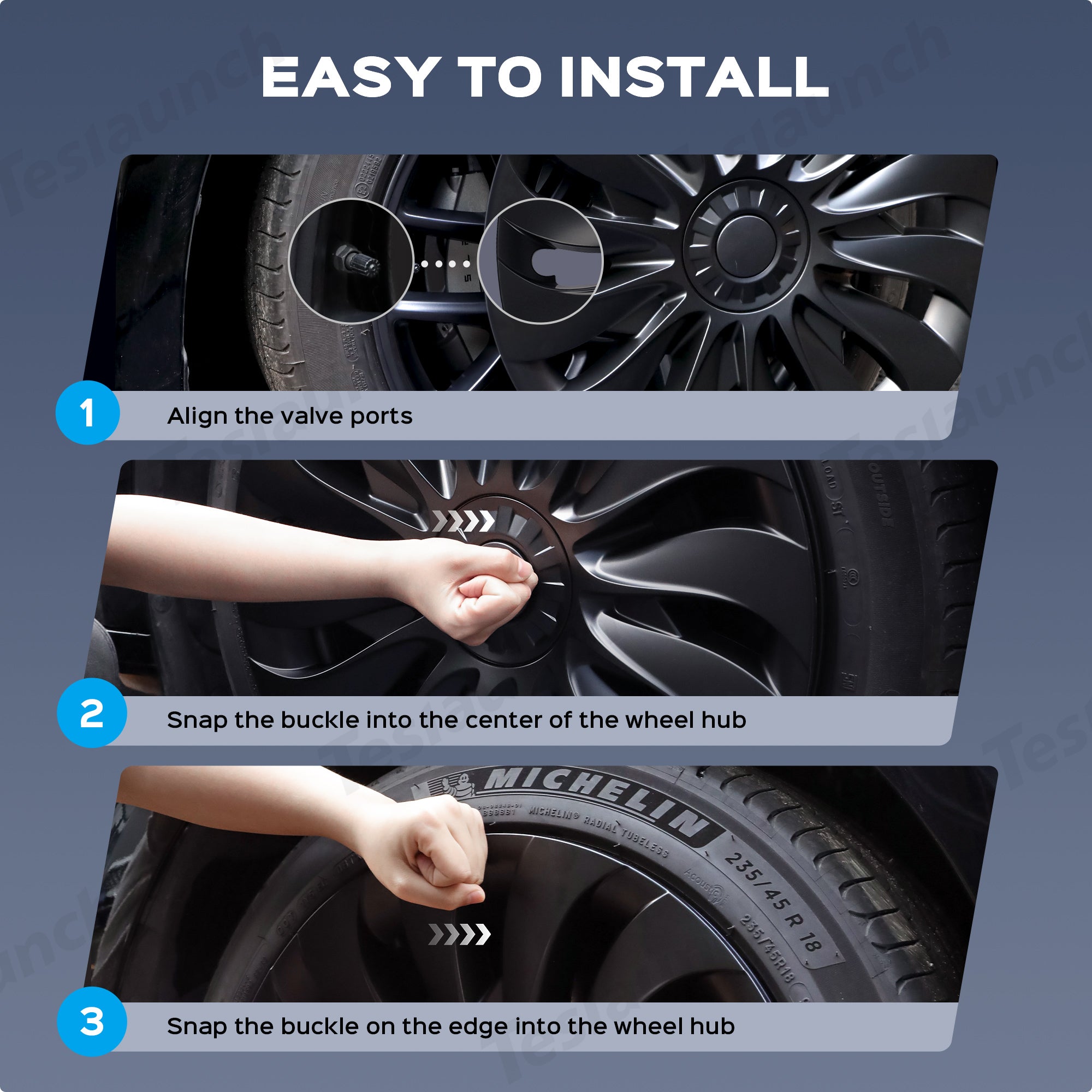 • ملاءمة مثالية:مصمم خصيصًا لـ Tesla Model 3. توفر أغطية العجلات هذه ملاءمة دقيقة تضمن بقاءها في مكانها بشكل آمن. لا داعي للقلق بشأن انفصالها أو سقوطها.