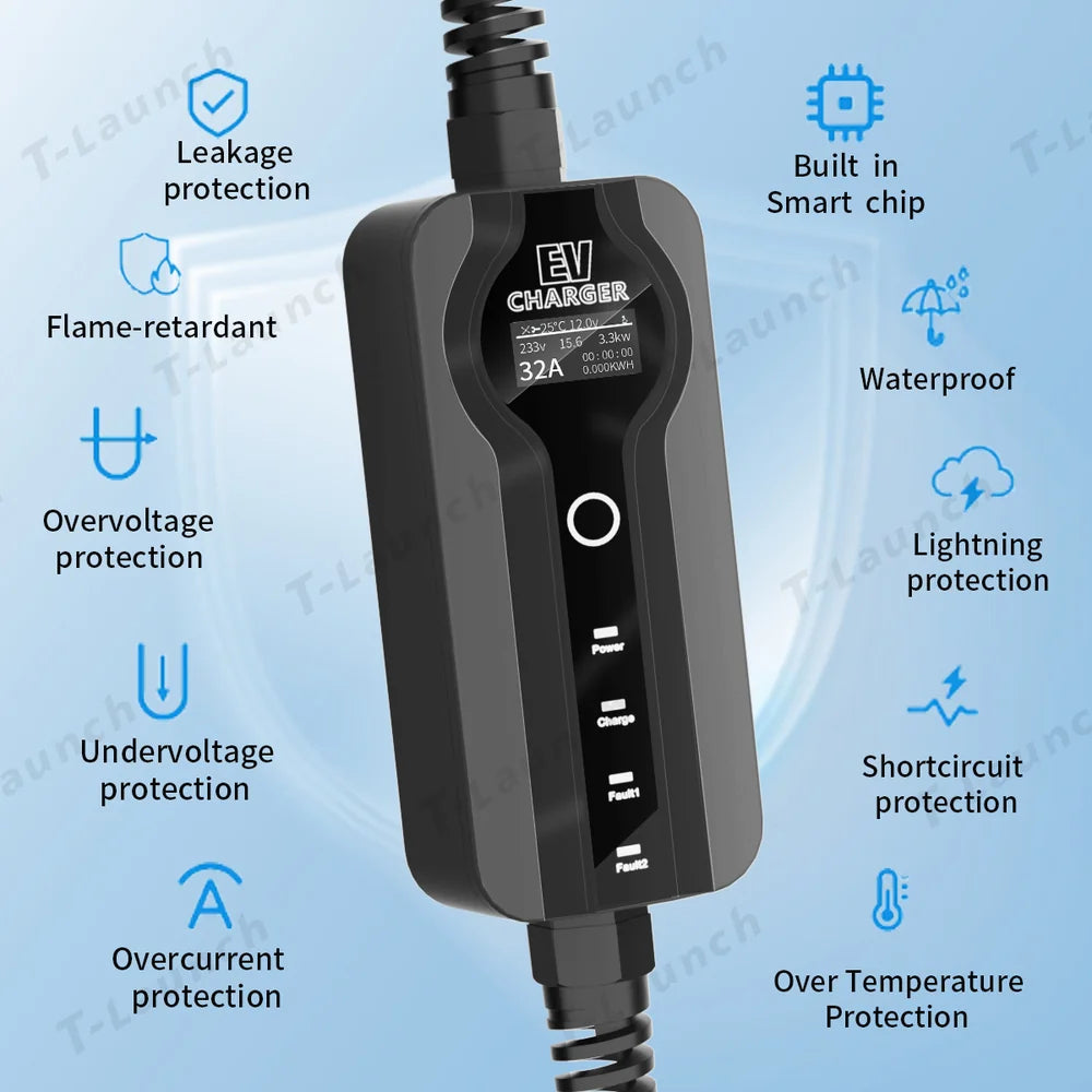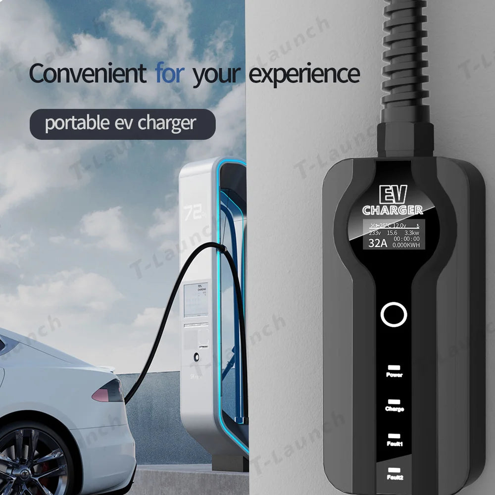 شاحن محمول 16 أمبير/32 أمبير، وضع قابل للتعديل، مستويين، شاحن منزلي مقاوم للماء للسيارات الكهربائية Tesla Model S/X/3/Y