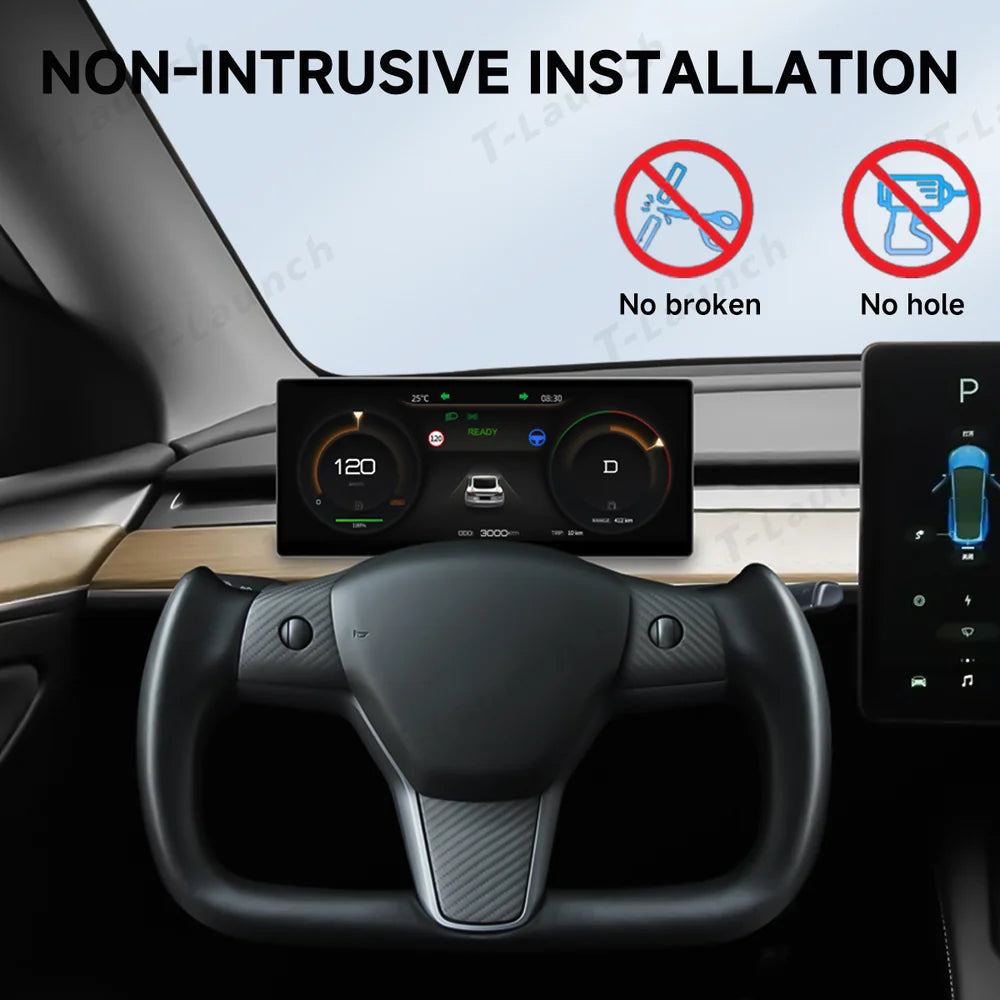 • Perfect Fit and Non-Intrusive Installation: Designed for Tesla Model 3/Y, the display features an ultra-thin, narrow bezel and fits seamlessly with the interior. A detailed installation video on this page guides you step by step, ensuring no impact on the original structure or wiring.