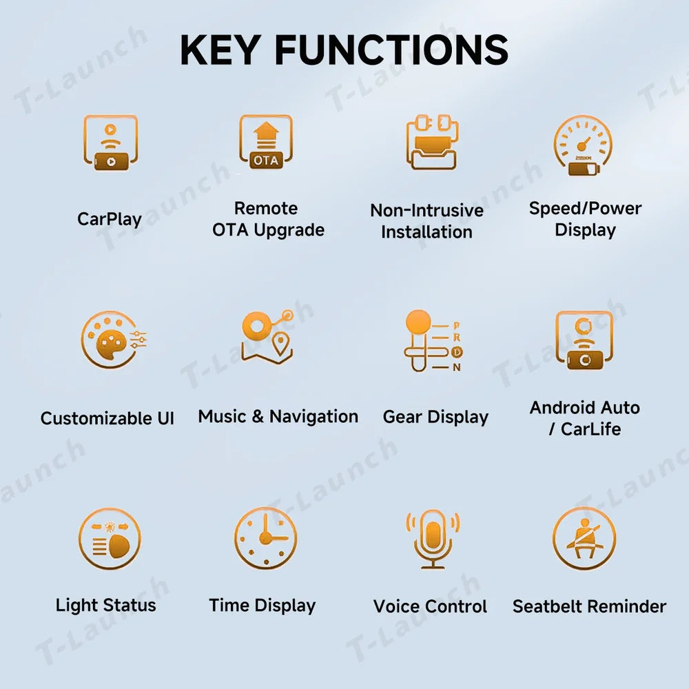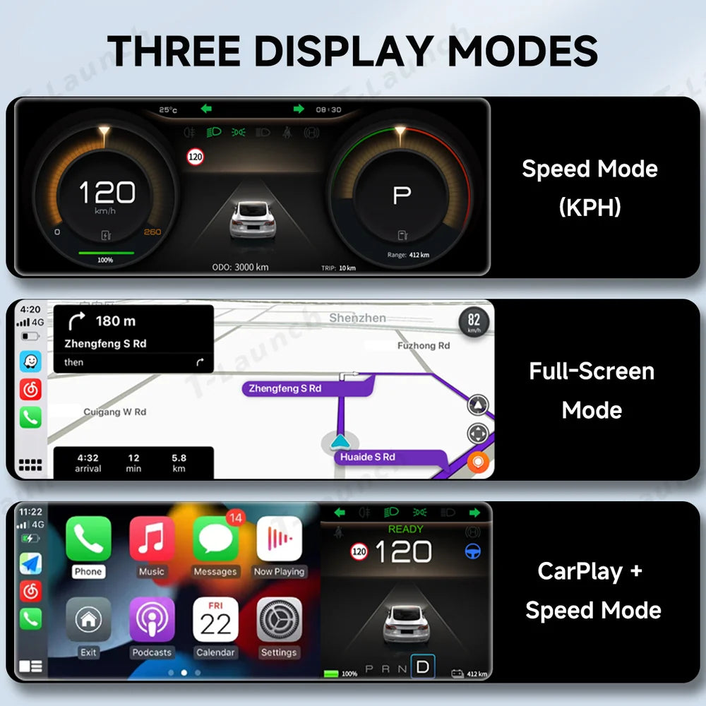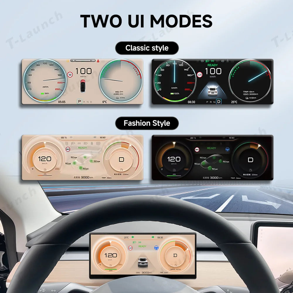 • Enhanced Driving Safety: Positioned directly in front of the driver, the display shows speed, gear, lights, tire pressure, and other key vehicle information in real time. Brightness automatically adjusts to ambient light, remaining clear during the day and easy on the eyes at night.