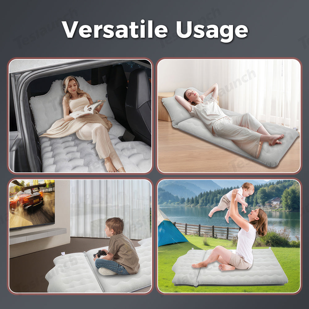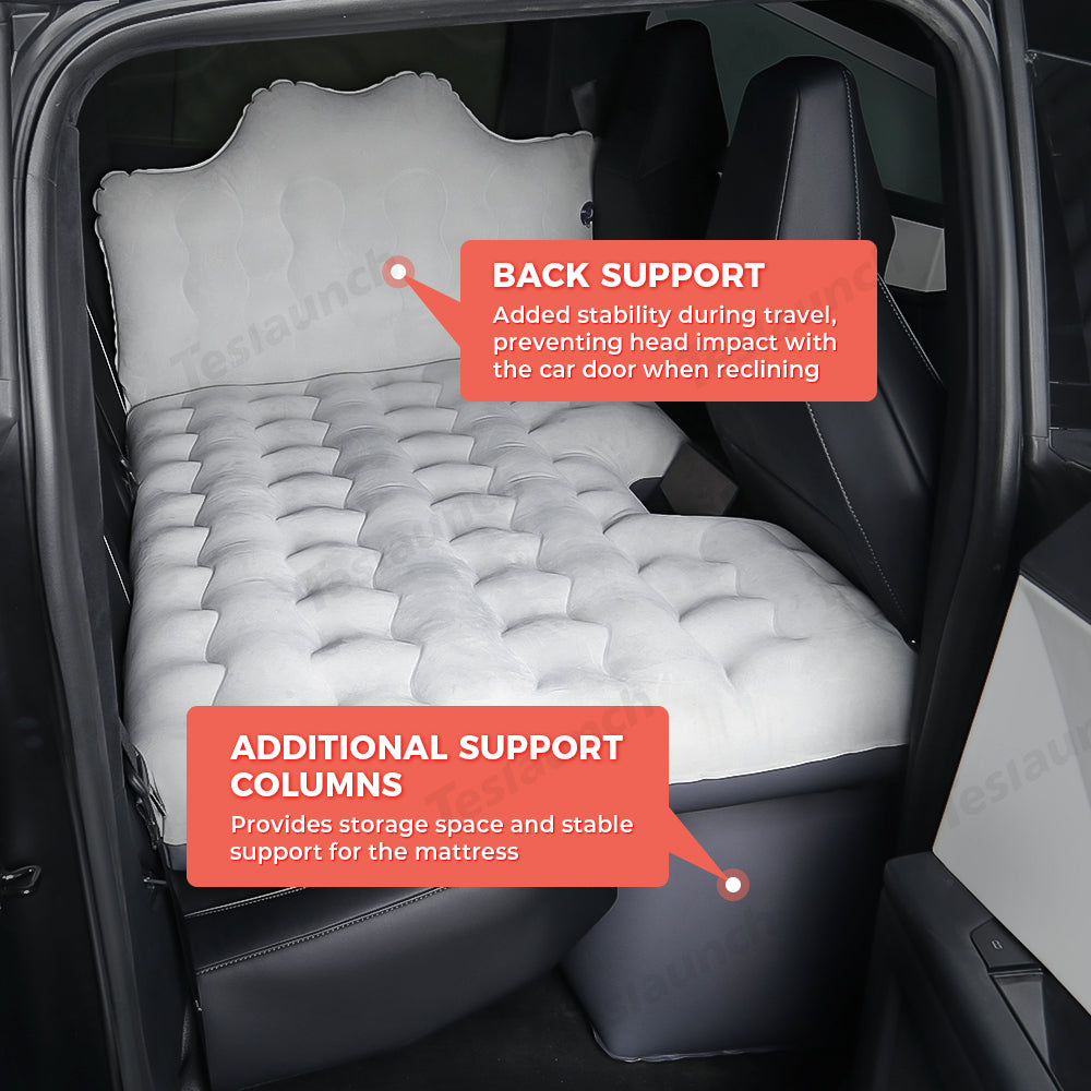 Nafukovací matrace Cybertruck pro zadní sedadla je navržena pro pohodlné a pohodlné kempování uvnitř vašeho... Tesla Cybertruck. Tato nafukovací matrace promění zadní sedadla v útulný prostor na spaní, což je ideální pro výlety autem nebo krátké zastávky na přenocování.