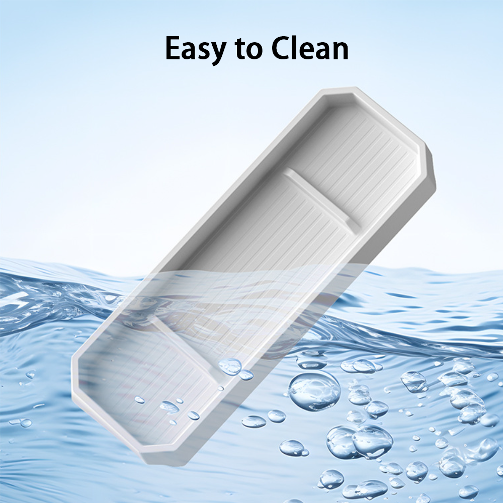 • Snadná instalace: Nejsou potřeba žádné nástroje ani lepidlo – vložte zásobník za obrazovku. Čištění je snadné; otřete jej vlhkým hadříkem nebo opláchněte vodou, aby vypadal nedotčeně.