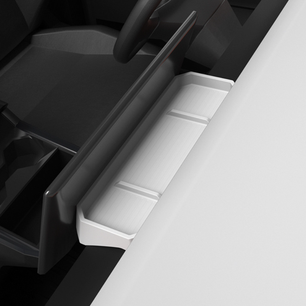 • Nezbytné příslušenství: Tento pečlivě vyrobený zásobník, který musí mít každý majitel Cybertruck, udržuje vaše sluneční brýle, karty, ubrousky a malé nástroje uspořádané a snadno dosažitelné, což zvyšuje váš zážitek z jízdy.