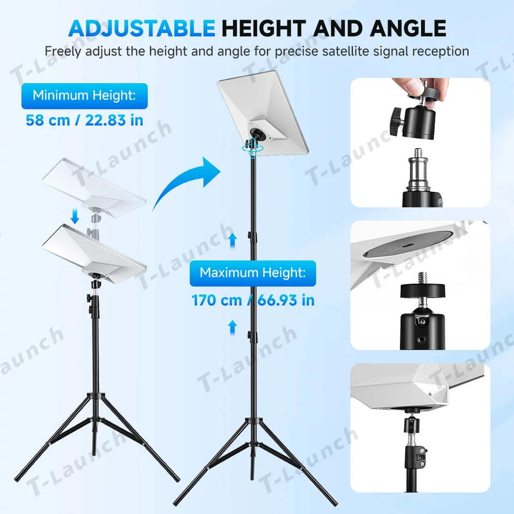 The Starlink Mini Adjustable Tripod Mount – 2025 New Version is a strong, portable, and reliable stand for your Starlink Mini. Made with a durable metal frame and alloy 1/4"-20 pipe adapter, it keeps your dish secure and steady. Its height (58–170 cm) and angle can be adjusted for the best signal, while the lightweight, foldable design makes it easy to carry for travel, camping, or outdoor use—perfect for courtyards, terraces, RVs, and boats.