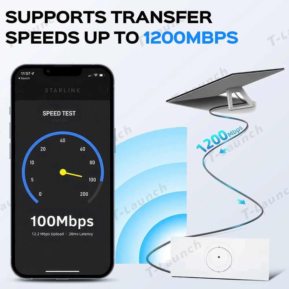 The Starlink to RJ45 Ethernet Cable for Starlink Mini offers fast and stable wired connectivity. Its shielded Cat6A design, combined with a high-quality 26AWG copper core, ensures reliable data transmission up to 1200 Mbps. Compatible with Starlink Mini, PCs, routers, NAS systems, and other LAN devices, this cable provides smooth data flow for your setup.