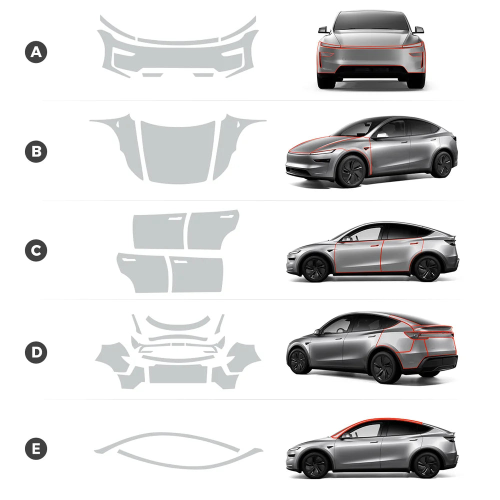 Hergestellt aus fortschrittlichem TPU-Material bietet diese unsichtbare Ganzkörper-Lackschutzfolie (PPF) außergewöhnlichen Schutz für die Tesla Model Y Juniper 2025+ schützt den Originallack vor täglicher Abnutzung. Entwickelt für eine nahtlose, unsichtbare Anwendung, passt es sich mühelos den Kurven des Fahrzeugs an und bietet eine vollständige Abdeckung bei gleichzeitig elegantem, ausstellungsreifem Finish. Dank hoher Elastizität und selbstheilender Technologie sorgt dieses PPF für Langlebigkeit und ein makelloses Aussehen Ihres Tesla.