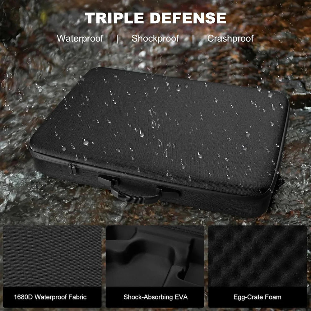 The Travel Storage Case for Starlink Gen 3 is designed to protect your Starlink devices during travel and outdoor activities. Made from lightweight, durable EVA material, it shields your equipment from drops, abrasions, and impacts. The custom-fit design accommodates the Starlink Gen 3 dish and router and features a shoulder strap and handle for easy carrying. With a stylish exterior, this case blends into outdoor settings, making it ideal for RV trips, camping, hiking, and more.