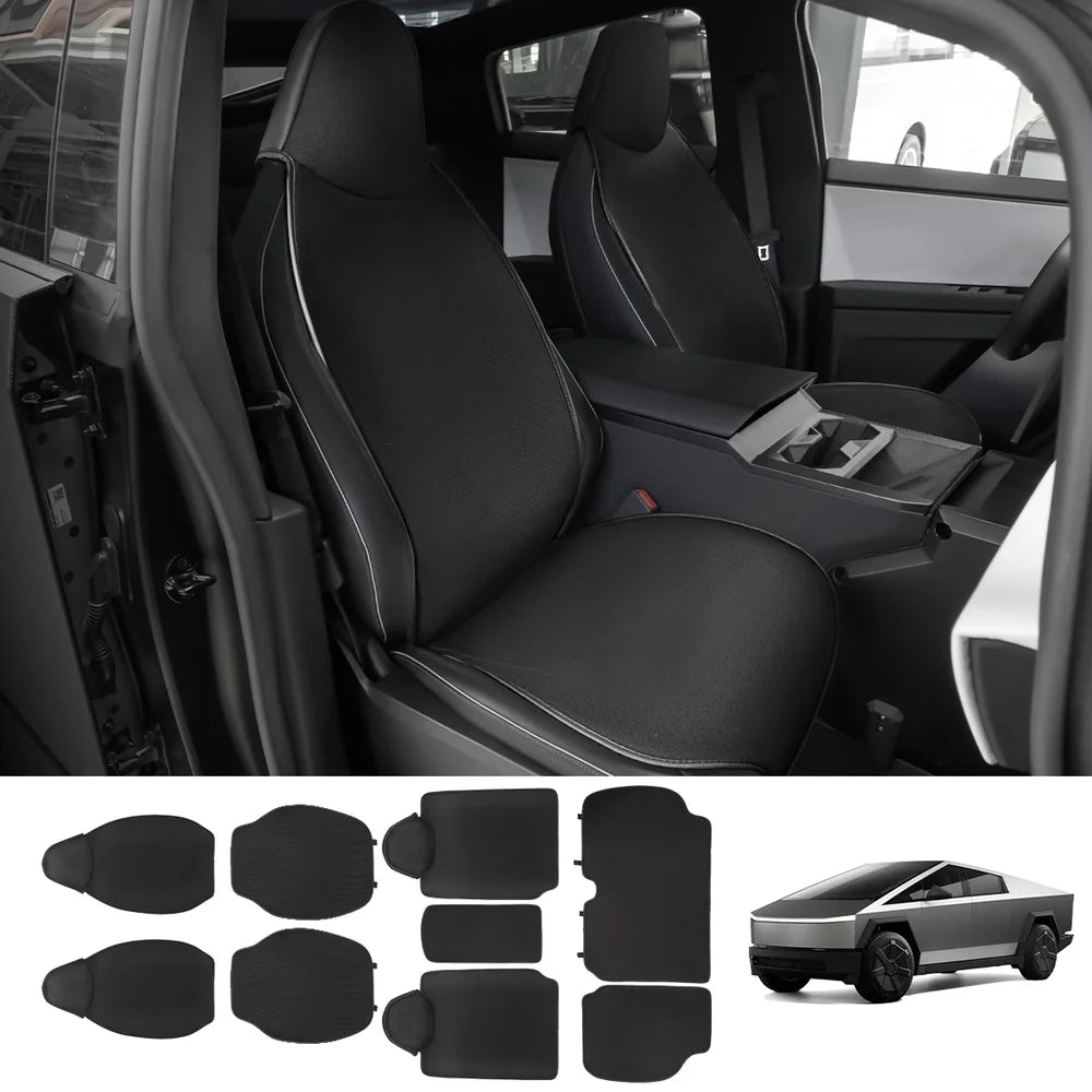 Elevate your Tesla Cybertruck's interior with our 9-piece Breathable Mesh Seat Cover Set. Custom-fit for front and rear seats, this set offers excellent ventilation and durable protection from spills, dust, and daily wear. Made from premium mesh fabric, these covers keep your seats cool and comfortable while enhancing your Cybertruck's sleek look.
