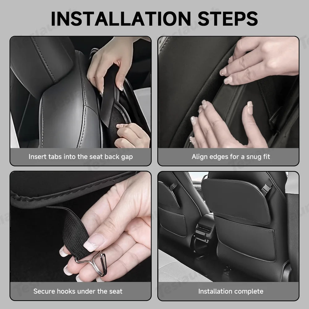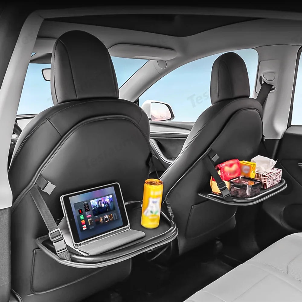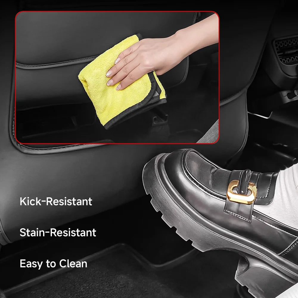 Upgrade your Tesla Model Y Juniper 2025+ with this Rear Seat Kick Mat with Tray Table—a smart, multi-functional accessory that adds protection, convenience, and style to your rear seats. Designed to resist scuffs, dirt, and scratches, it also features a foldable tray table and spacious storage pocket to improve everyday practicality. Crafted from eco-friendly microfiber leather, it blends in seamlessly with your interior while installing securely without damaging your original seats.