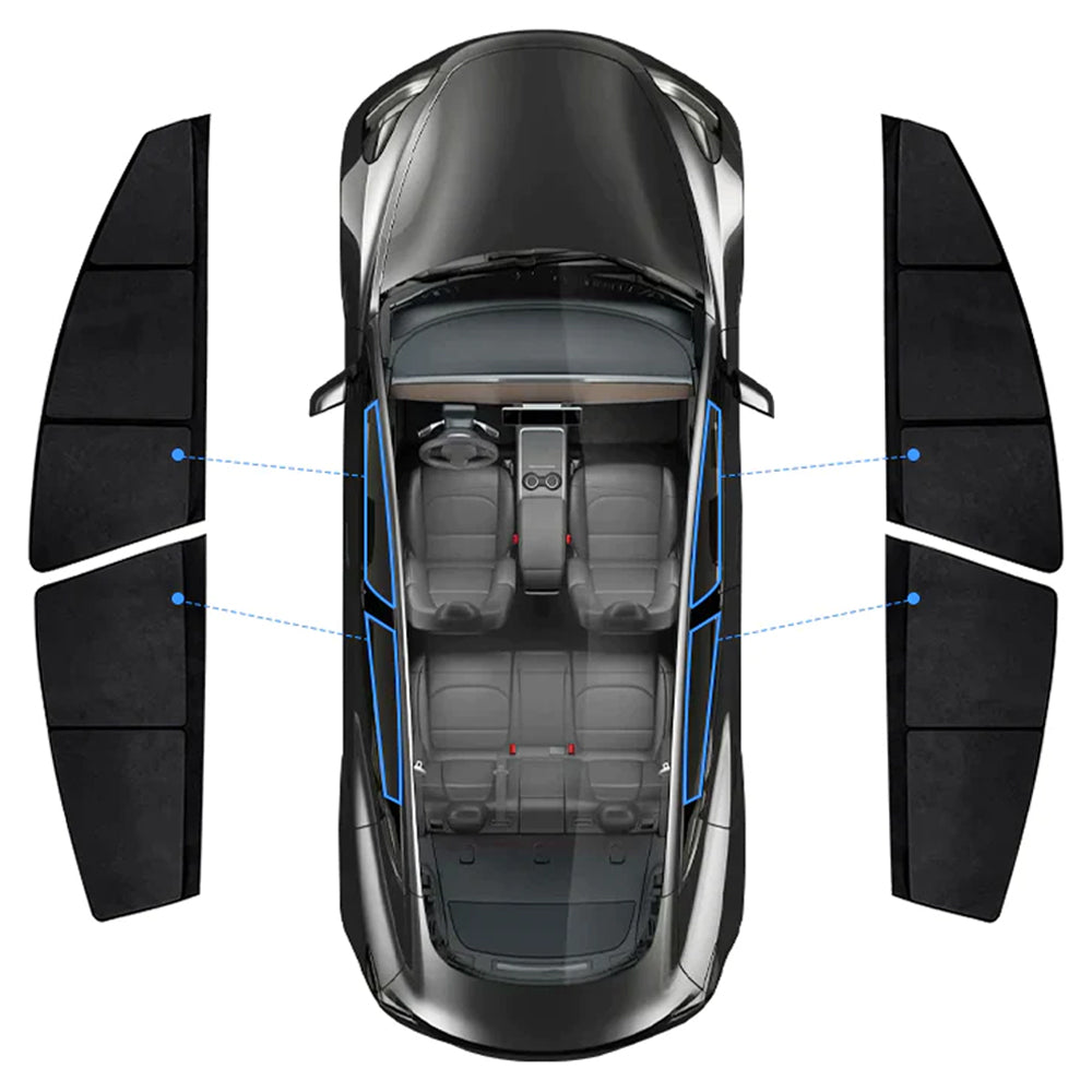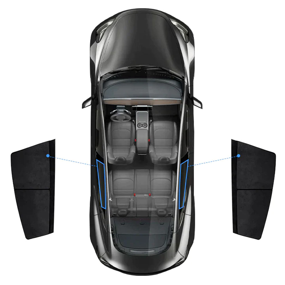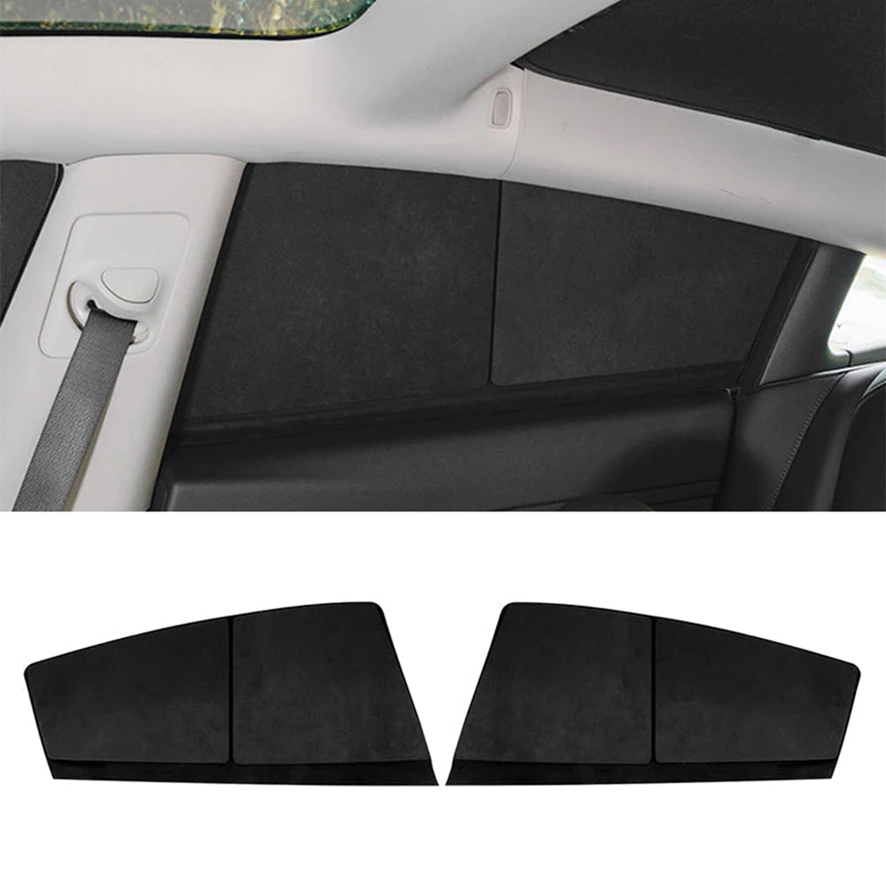 The Tesla Model Y/3 Side Windows Suede Opaque Privacy Sun Covers, the ultimate solution for enhancing privacy and providing sun protection for your side windows. Made with high-quality materials and perfect fit for Tesla 3/Y. Do not affect closing and opening the car door.