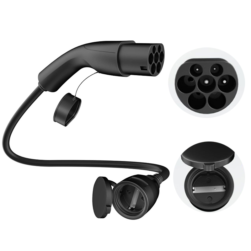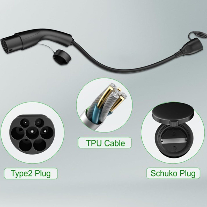 Ο προσαρμογέας τύπου 2 Plug to Schuko Plug έχει σχεδιαστεί για την τροφοδοσία δημόσιων σταθμών φόρτισης ή επιτοίχια κουτιά φόρτισης. Διαθέτει τυπικό βύσμα Schuko στο ένα άκρο, συμβατό με τυπικές οικιακές πρίζες. Αυτός ο προσαρμογέας διευκολύνει τη φόρτιση για ηλεκτρικά σκούτερ, ηλεκτρονικά ποδήλατα, ηλεκτρικές μοτοσικλέτες ή ηλεκτρικά αναπηρικά αμαξίδια.