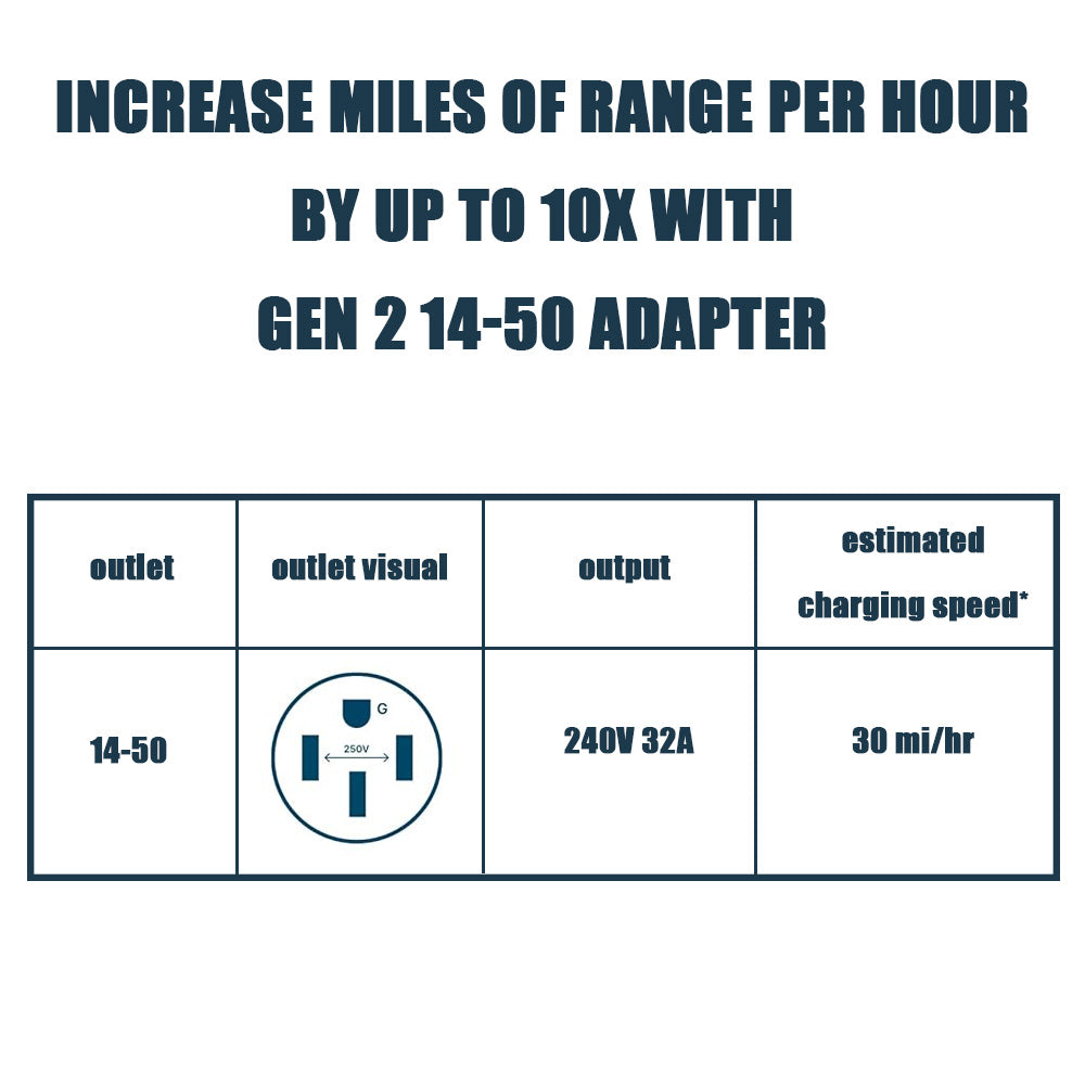 14-50 adapteriTeslaGen 2 Liikkuva kannettava lataus