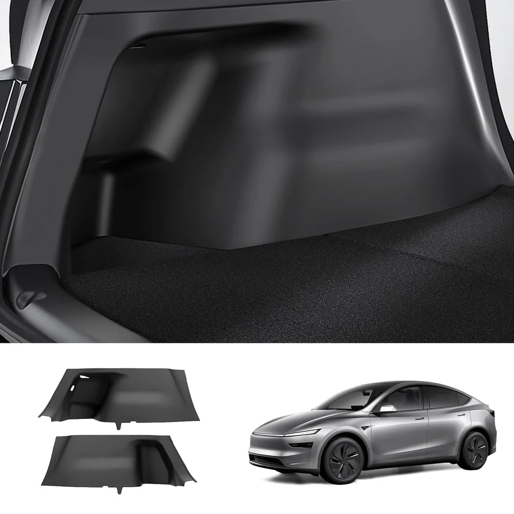 Upgrade your Tesla Model Y Juniper's trunk space with a sleek, integrated protection solution. These full-coverage trunk side panels are custom-molded for the 2025+ Juniper model, combining a seamless OEM look with practical everyday durability. Designed with an ultra-slim profile, they fit snugly into the factory rubber trim without adding thickness or interfering with the trunk shelf’s movement—preserving all original functions while protecting your trunk from daily wear.