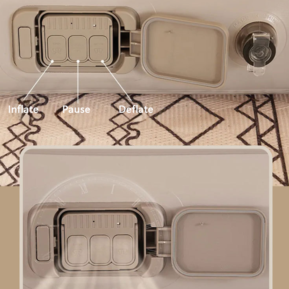 • Nopea inflaatio ja deflaatio: Sisäänrakennetulla ladattavalla pumpulla varustettu patja täyttyy ja tyhjenee automaattisesti vain 2 minuutissa napin painalluksella, mikä mahdollistaa nopean ja helpon asennuksen ja säilytyksen.