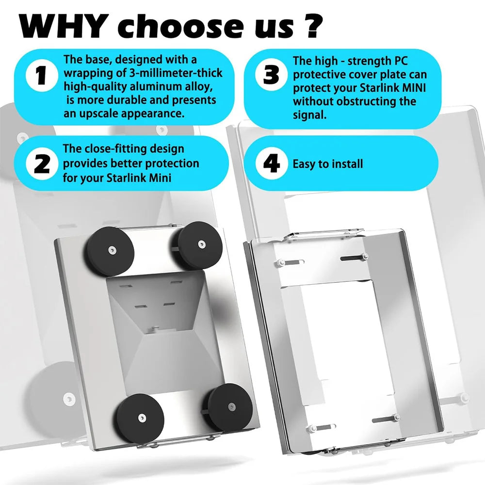 Stay connected anywhere with the Starlink Mini Magnetic Flat Mount Kit, built for strength, stability, and protection. With a powerful 264 lbs magnetic load capacity and a durable PC cover plate, it keeps your Starlink Mini securely mounted on any flat metal surface — from your vehicle roof to outdoor setups — without compromising signal quality or safety.