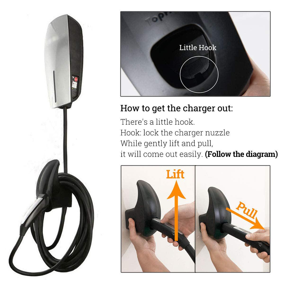 • Yksinkertainen käyttö: Aseta ja napsauta Tesla lataussuutinta.10 metrin pituiset kaapelit voidaan helposti kelata ylös ja ripustaa pidikkeeseen. Se auttaa suojaamaan latausliitäntää sadevedeltä, pölyltä ja muulta!