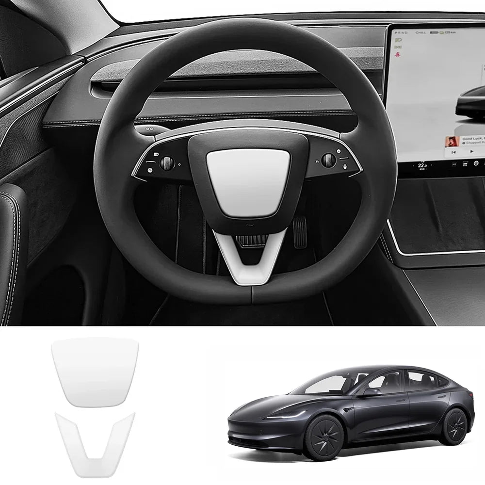 Upgrade your Tesla's interior in minutes. Specifically designed for Model 3 Highland Standard 2025+, this ABS Steering Wheel Center Cover and V-Shape Trim set is the perfect blend of style and protection. With a sleek, factory-style fit, it enhances the look of your steering wheel while shielding it from everyday wear. Made from premium ABS material, it's lightweight, durable, and built to last—so your interior stays looking new for years to come.
