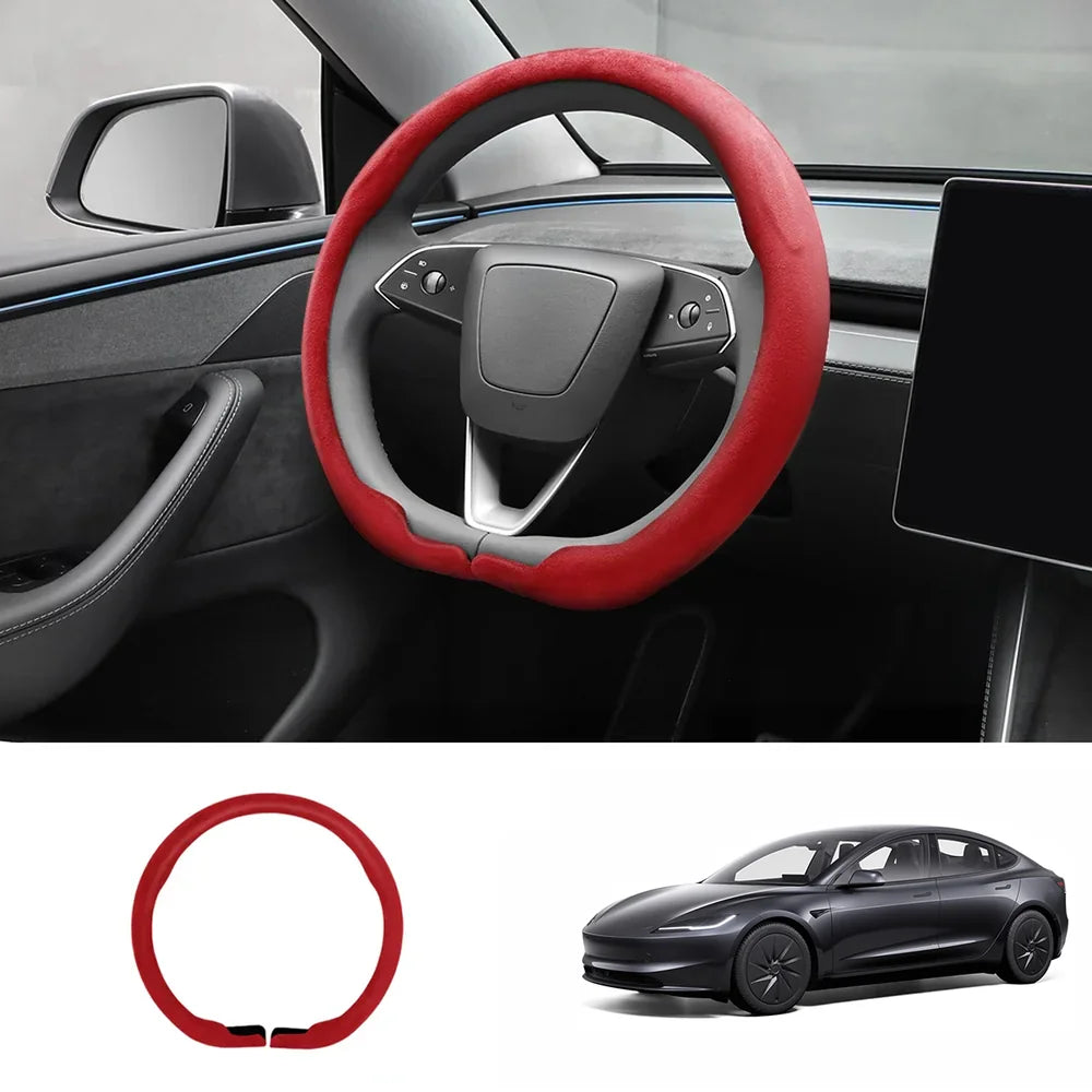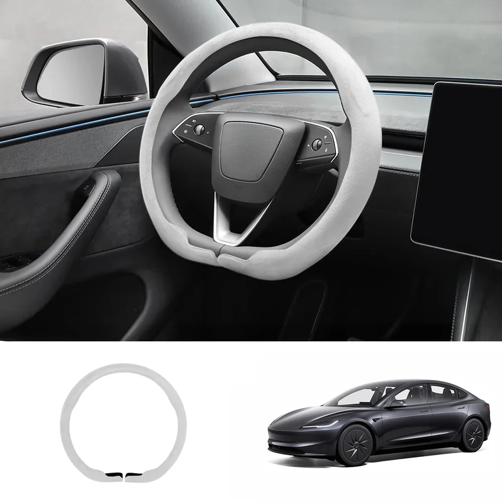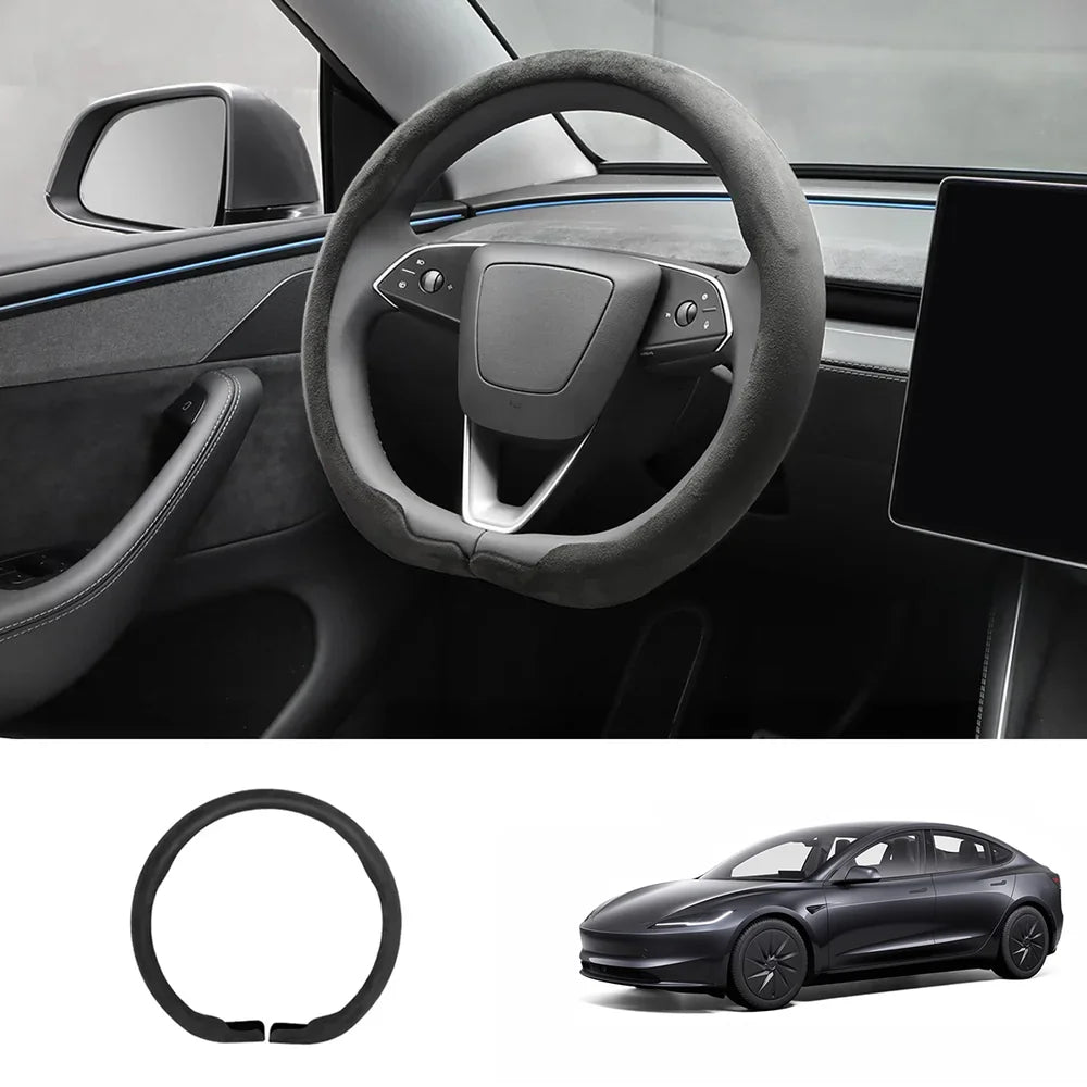 Alcantara Steering Wheel Cover (Hand Stitch, Half-Open, One-Piece) for Tesla Model 3 Highland Standard 2025+