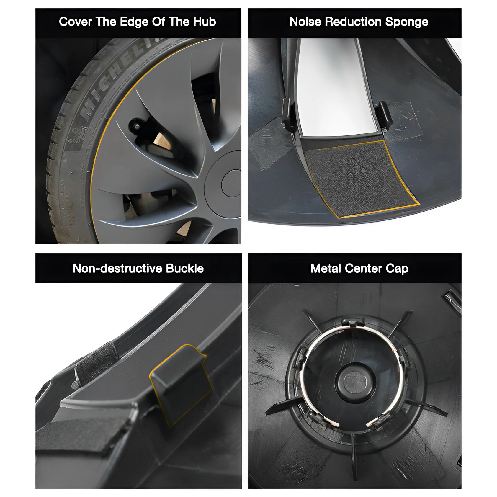 • Ces enjoliveurs sont spécialement conçus pour les roues Model Y 19", garantissant un ajustement parfait et une installation facile par clipsage. Non seulement ils améliorent l'apparence de votre voiture, mais ils offrent également des avantages fonctionnels tels que la réduction du vent. résistance et bruit de la route.