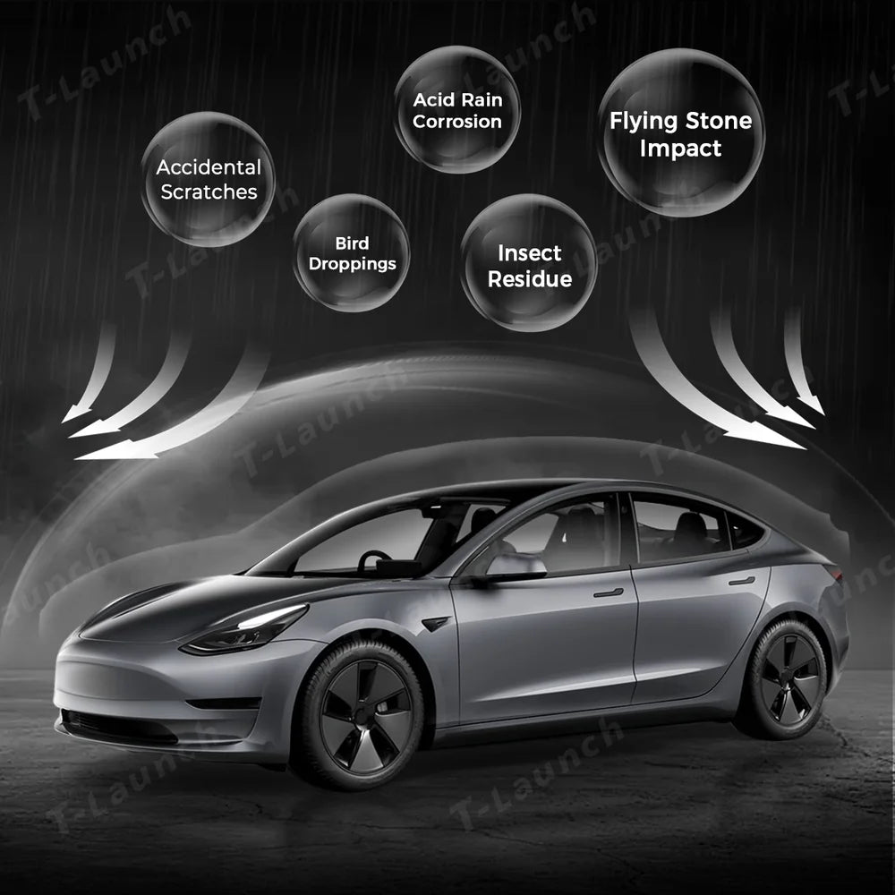 Specially designed for the Tesla Model 3 (2020–2023), this invisible full-body paint protection film (PPF) is made from advanced TPU material to deliver seamless coverage and long-lasting durability. Precision-cut for an exact fit, it conforms perfectly to the Model 3's sleek lines, shielding the paint from scratches, chips, and UV damage—while remaining virtually invisible. With self-healing technology and reliable protection, it helps maintain a pristine, showroom-quality finish for years to come.