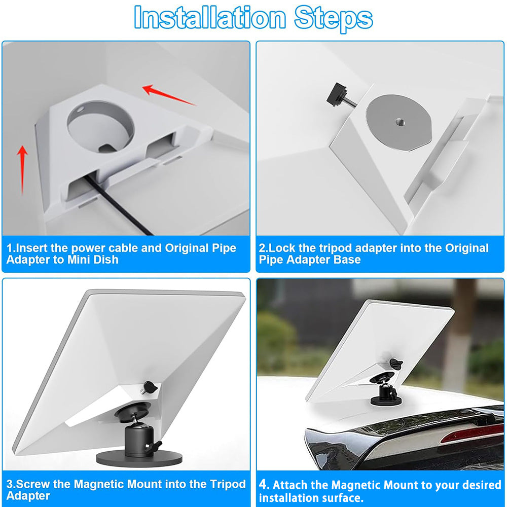 The Adjustable Magnetic Car Mount for Starlink Mini is a sleek and durable mounting solution designed to hold your Starlink Mini satellite dish securely. Featuring a strong magnetic base, a 360-degree adjustable design, and compact portability, this mount ensures reliable connectivity even on the go. Whether traveling in an RV, or car, or setting up in an outdoor location, this mount provides a secure and stable attachment to metal surfaces, making it perfect for adventurers and digital nomads.