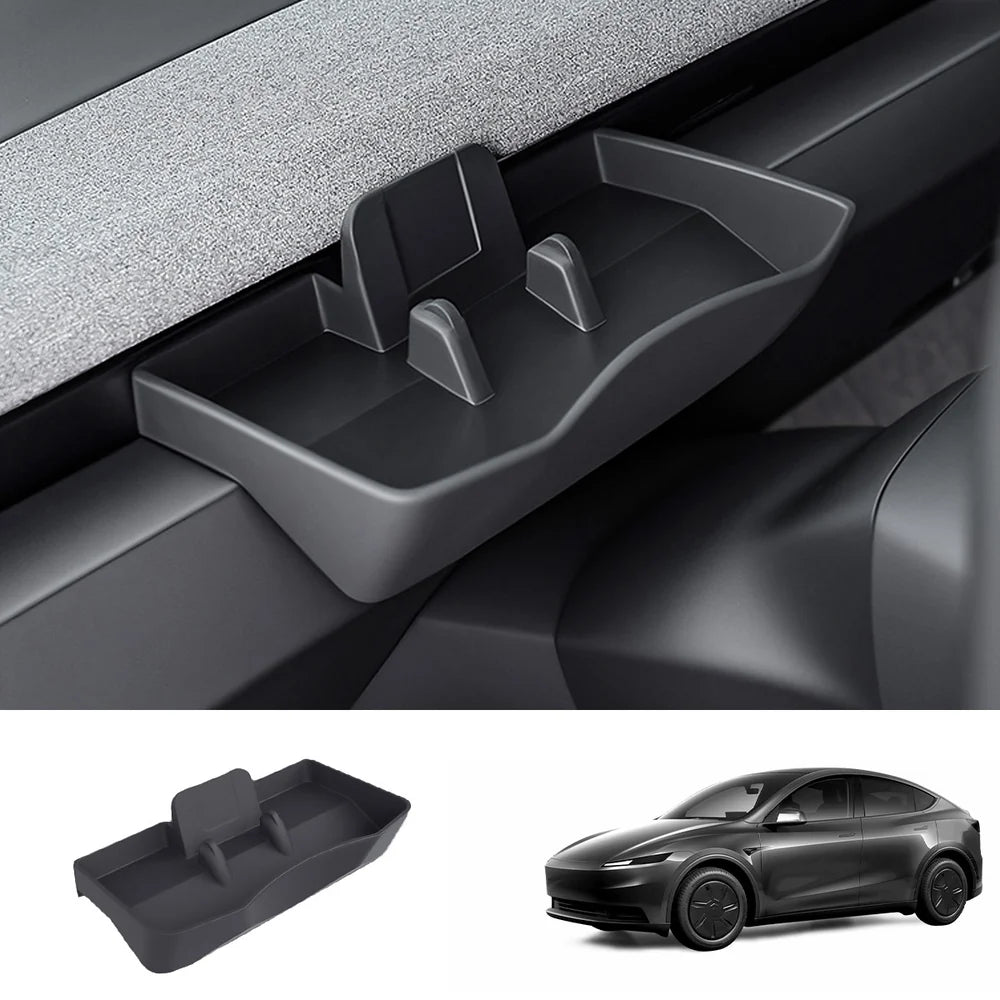 This dashboard Organizer tray and multi-use holder is custom-designed for 2026 New Tesla Model Y Standard, featuring precise 1:1 molding to perfectly fit the dashboard contours. It securely installs into the air vent gap using a sturdy clip structure, keeping your phone and everyday items stable without wobbling or falling. Made from eco-friendly silicone material, it is stain-resistant, easy to clean, and combines practicality with style. Whether used for navigation assistance or storage, it enhances your driving safety and comfort.