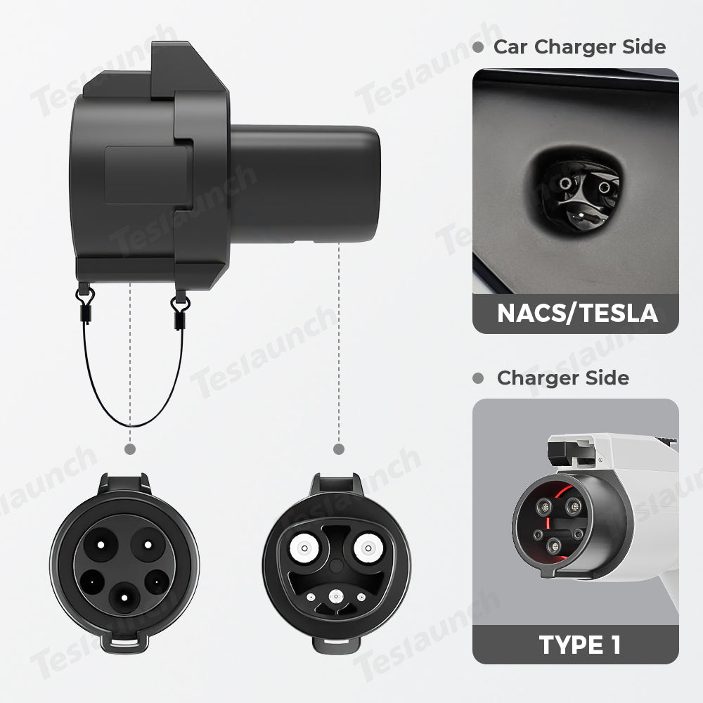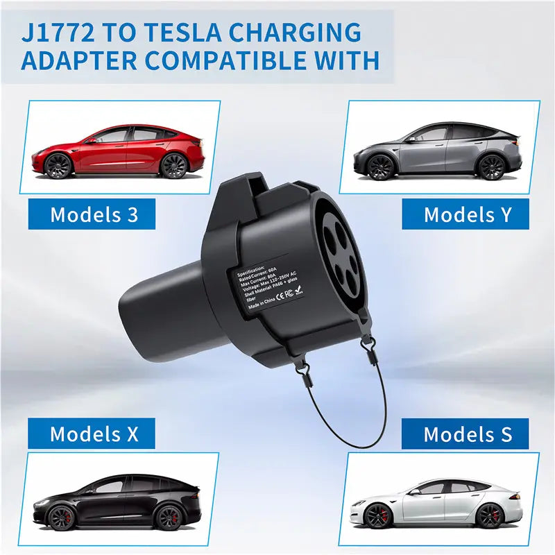 Aggiorna a J1772 per Tesla adattatore di ricarica con robusto materiale PA66 e FIBRA DI VETRO, resistente a temperature fino a 200°C, che previene la deformazione. Il nuovo blocco del caricabatterie impedisce disconnessioni indesiderate, ideale per la ricarica pubblica, mentre la sua classificazione IP55 garantisce una ricarica all'aperto a prova di intemperie.