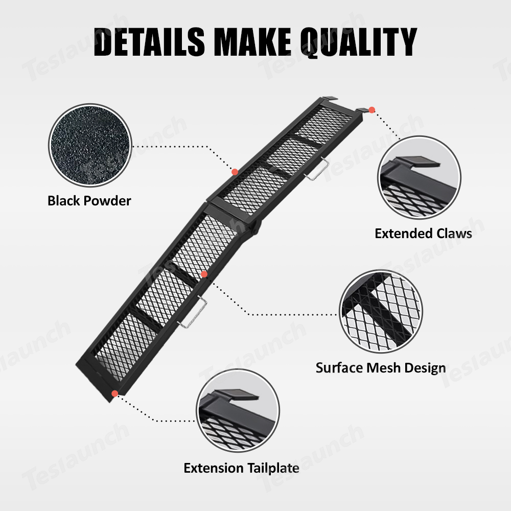 Prova una durevolezza e una versatilità senza pari con la nostra rampa di carico portatile pieghevole in acciaio per impieghi gravosi. Realizzata in robusto acciaio verniciato a polvere, questa rampa è progettata per resistere facilmente ai rigori del carico di ATV, motociclette, spazzaneve o motocoltivatori. Il suo design pieghevole assicura uno stoccaggio e un trasporto senza sforzo, completato da una comoda maniglia per la portabilità.