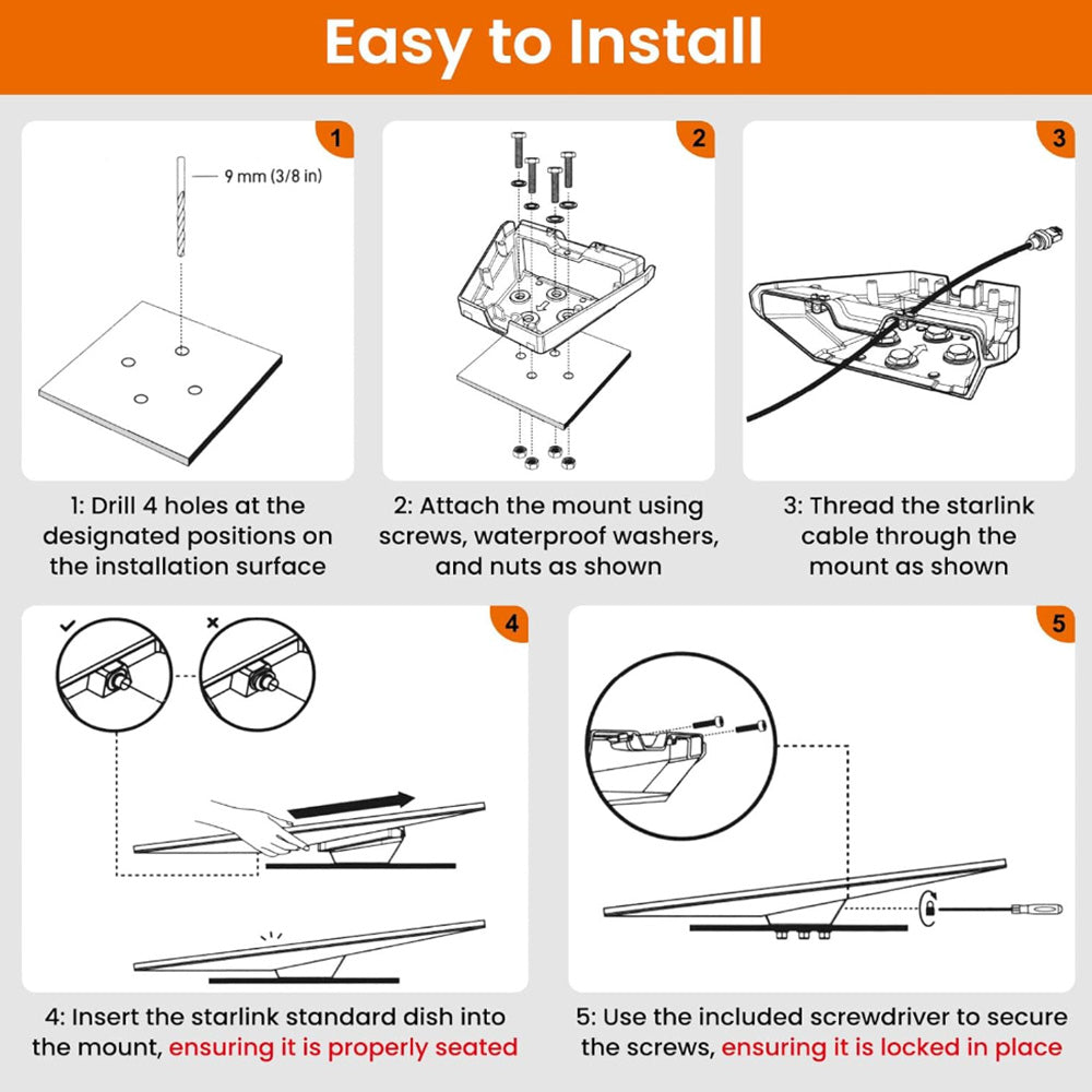 Starlink Gen 3 접시형 안테나용 도난 방지 루프 마운트는 RV, 트레일러, 요트, 트럭 및 기타 이동식 또는 고정식 플랫폼에 접시형 안테나를 장착할 수 있는 내구성 있고 안전한 솔루션입니다. 녹슬지 않는 알루미늄 합금으로 제작되어 혹독한 환경에서도 오랫동안 뛰어난 성능을 발휘합니다. 도난 방지 잠금 장치는 접시형 안테나가 제자리에 단단히 고정되도록 보장하며, 8° 기울기 각도는 신호 수신을 향상시키고 바람 저항을 줄여줍니다.