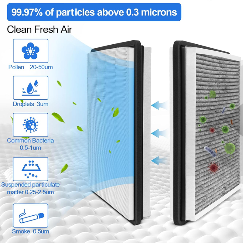 • 업그레이드된 디자인: 이 필터는 탁월한 여과 성능을 제공하며, 이중 층 활성탄 원단과 고품질 활성탄을 활용하여 360도 공기 정화를 보장합니다.