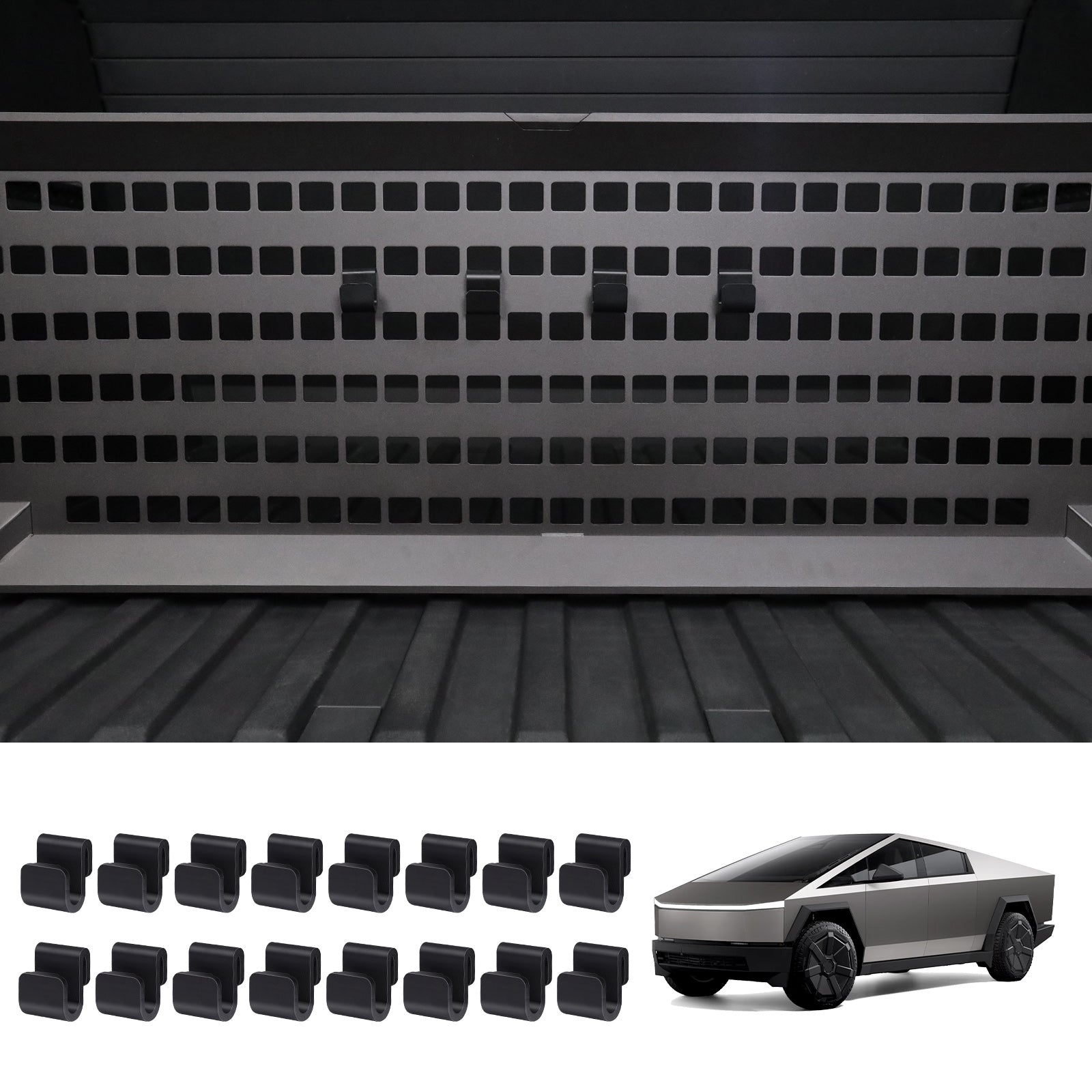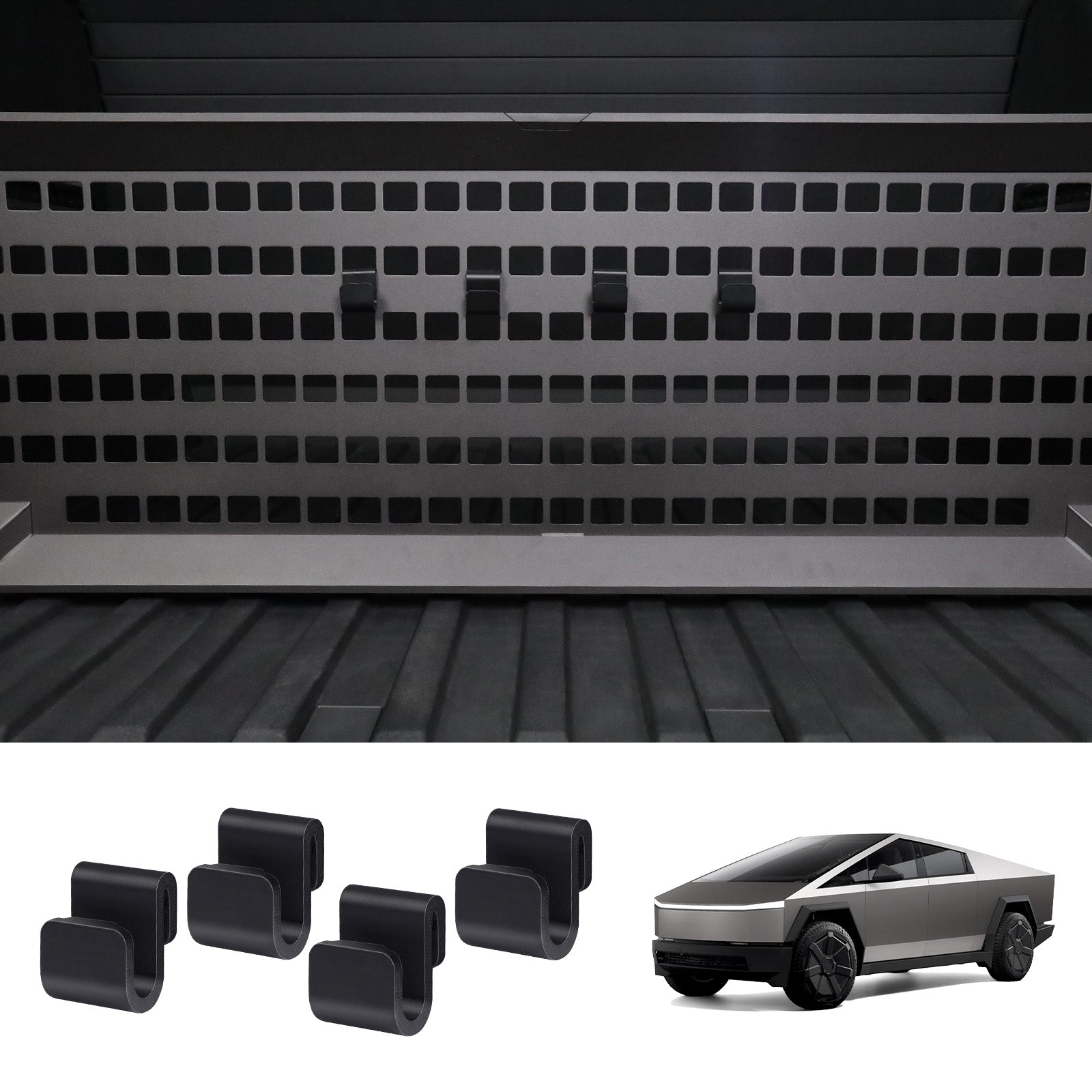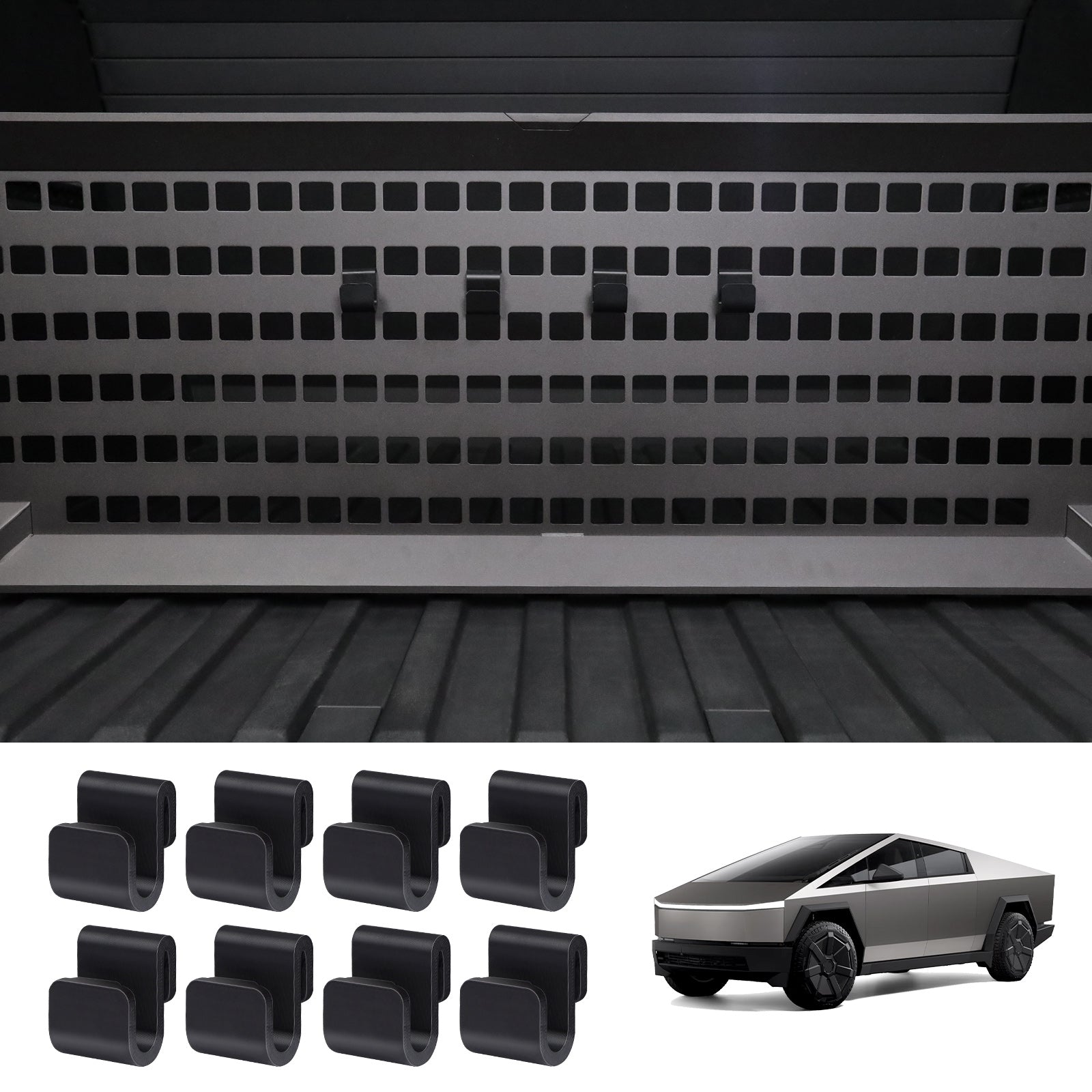 MOLLE 패널용 후크 및 Cybertruck용 Vault Cargo Divider는 다음과 같은 기능을 향상시키도록 설계되었습니다. Tesla 사이버트럭의 수납 및 정리 기능. 이 후크는 사이버트럭의 MOLLE 패널과 볼트 카고 디바이더에 완벽하게 맞춰져 식료품 봉투, 장비 및 기타 물품을 안전하게 보관할 수 있습니다.