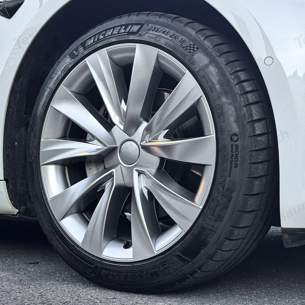 Elevate the appearance of your Tesla Model 3 (2017–2023) with these premium 18" Aero Wheel Covers. Crafted with precision to fit factory 18'' Aero wheels, these covers boast a striking Helix 2.0-inspired design for a stylish upgrade. Constructed from high-quality polypropylene (PP), these caps offer durable protection against daily wear and tear, ensuring your wheels maintain a flawless look.