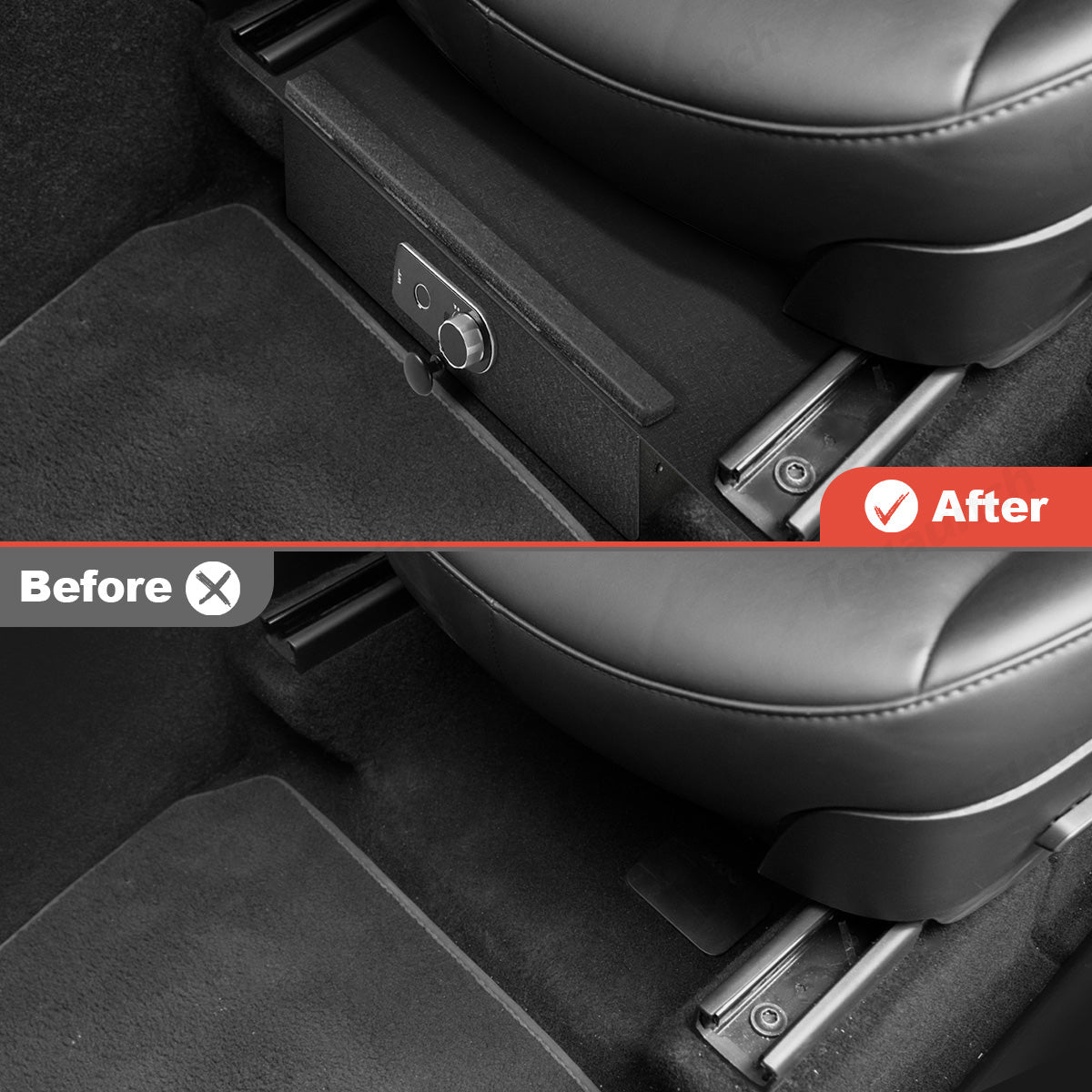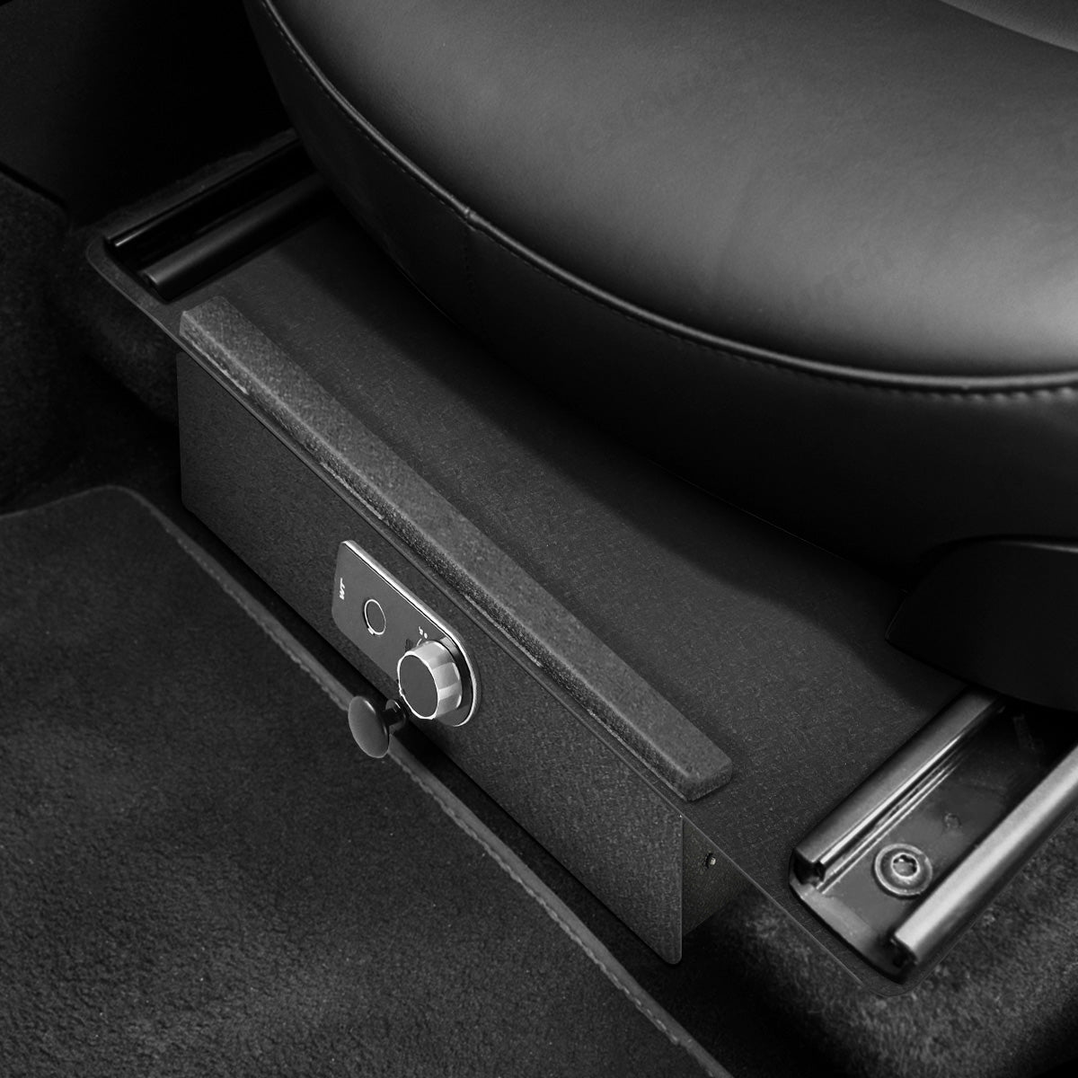 Låseboks med fingeravtrykk og tyverisikring under setet foran for Tesla Model Y (2020–2024) tilbyr sikker og diskret oppbevaring av verdisaker, noe som gir deg trygghet mens du kjører. Med avansert biometrisk fingeravtrykkgjenkjenning gir denne låseboksen rask tilgang til tingene dine, inkludert telefoner, lommebøker og andre viktige eiendeler. Spesielt designet for Model Med perfekt passform under forsetene forstyrrer den ikke setejusteringen. Låseboksen er konstruert av slitesterkt kaldvalset stål og tilbyr robust beskyttelse mot tyveri, mens det elegante designet passer sømløst inn i interiøret.