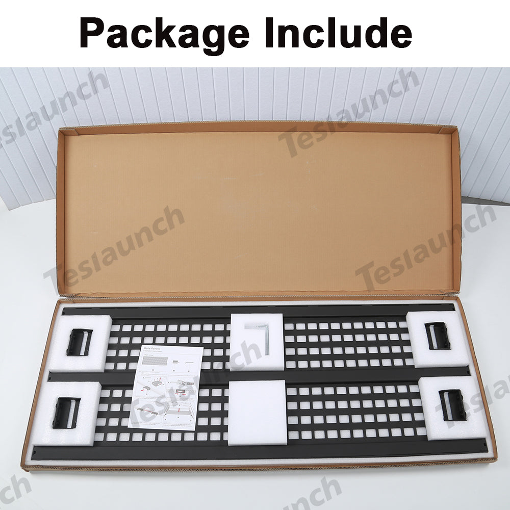 Bagasjerommet bak L-Track Molle Cargo Shelf Rack for Cybertruck er den ultimate løsningen for å organisere og maksimere lastebilens lasterom. Laget av slitesterk aluminiumslegering, kan dette stativet bære opptil 176 lbs vekt. Med en robust L- Sporsystem, det gir sikker og stabil lagring for tungt utstyr, verktøy og tilbehør. Det integrerte Molle-systemet tilbyr fleksible alternativer for å organisere lasten din, noe som gjør den ideell for både hverdagsbruk og terrengeventyr.
