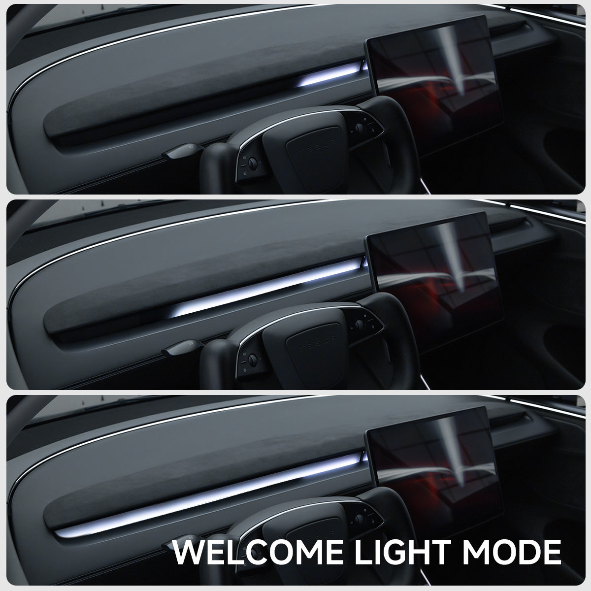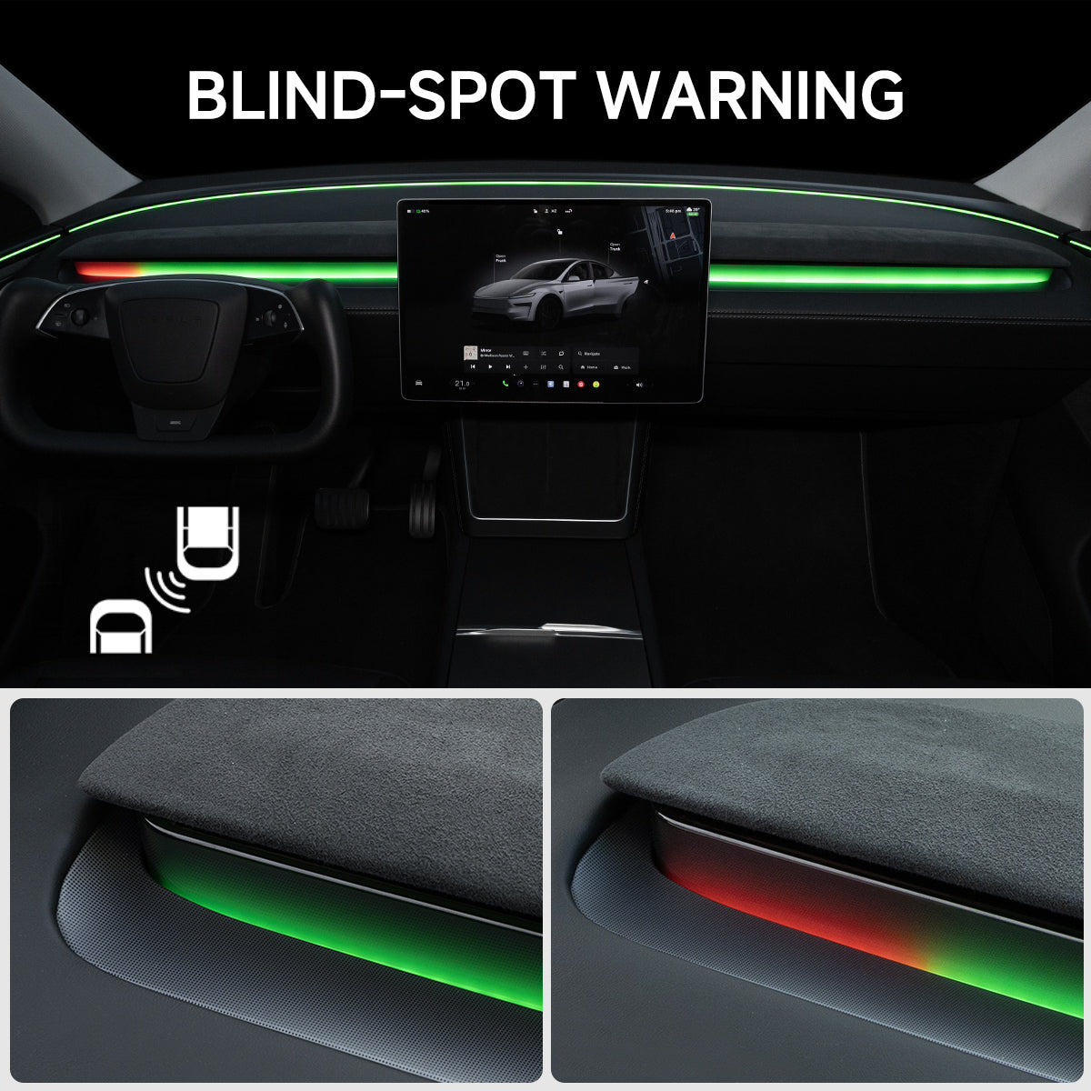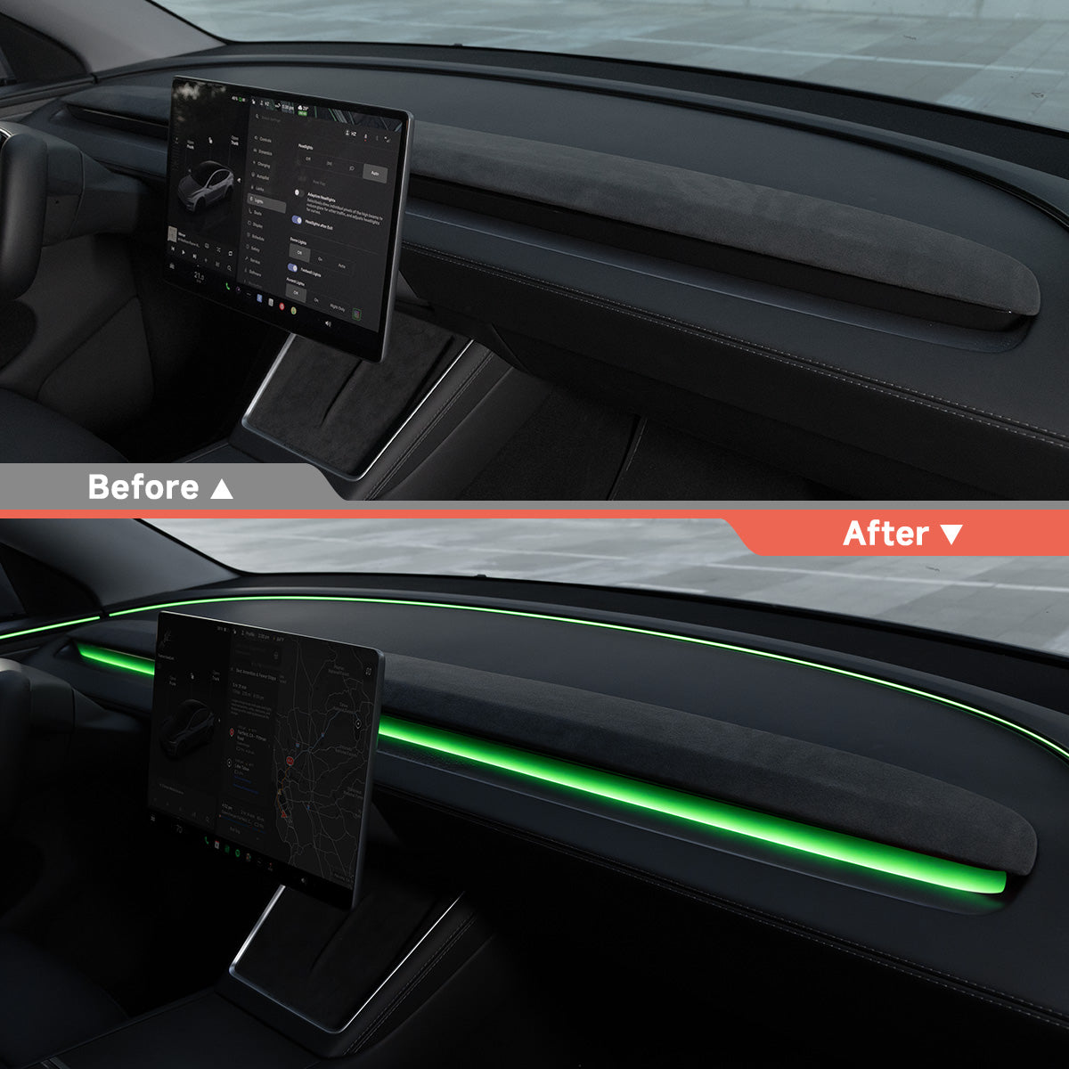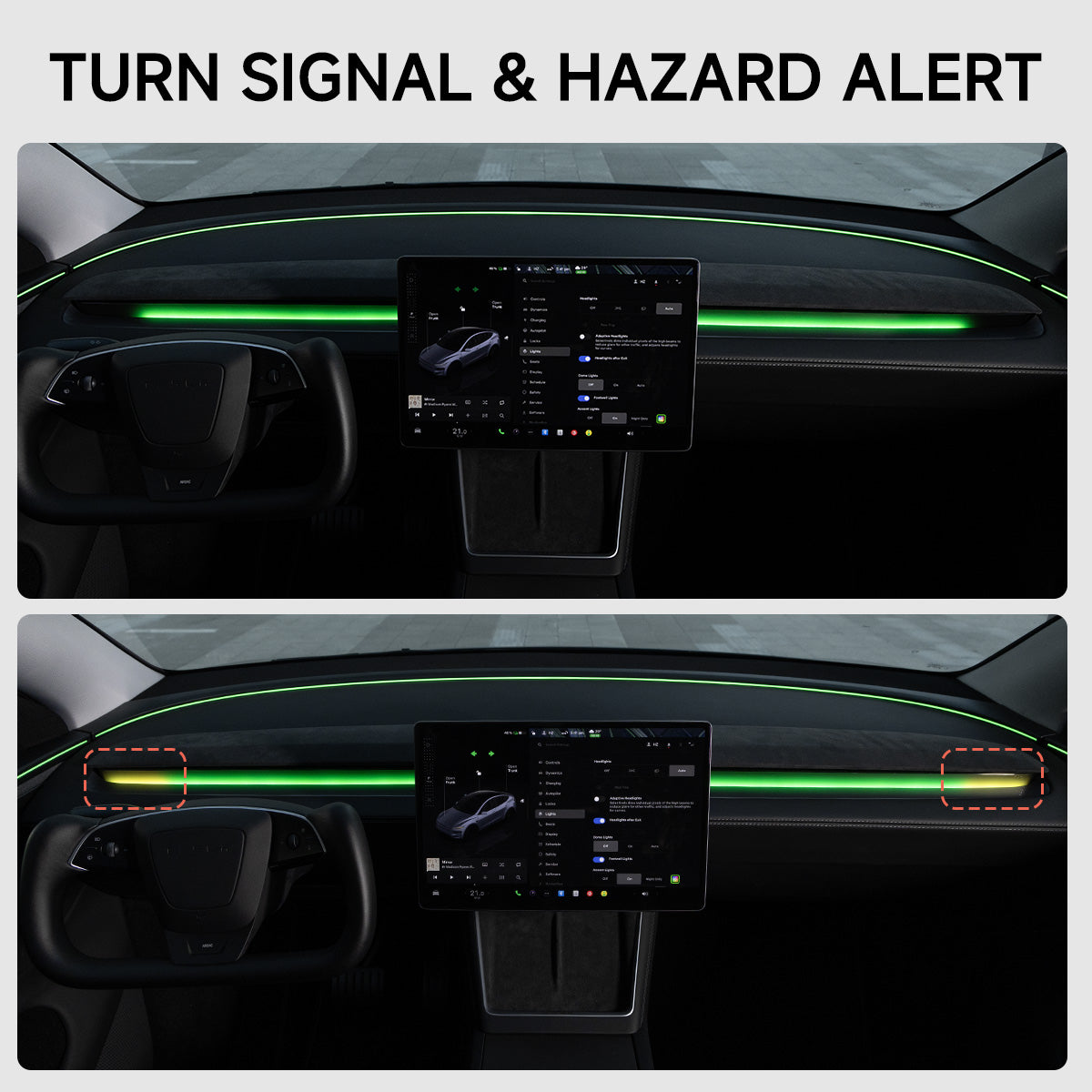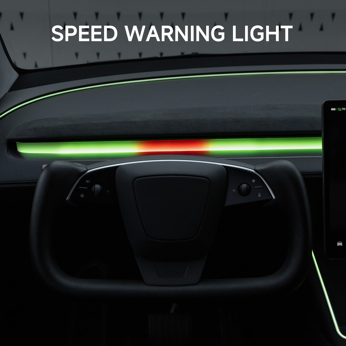 Enhance your driving experience with a smart ambient dashboard light bar designed for the Tesla Model Y Juniper / Model 3 Highland. It not only enhances cabin ambience but also delivers real-time driving information for safer trips. Flowing light effects and subtle visual cues make every drive more immersive and interactive. This adds a sense of sophistication while keeping important alerts easy to notice.