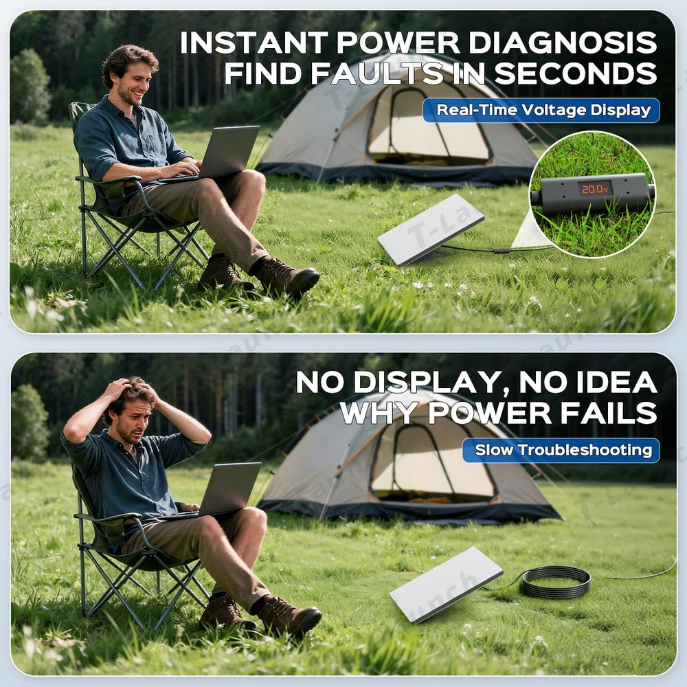 Keep your Starlink Mini powered anywhere with this 12V/24V car power converter, part of the Starlink Mini Accessories. This Cigarette Lighter to DC adapter delivers stable 20V power with no voltage drop or reboot, and features a real-time voltage and current display for safe, reliable performance. Compact and portable, this Car Adapter ensures your Starlink Mini runs smoothly wherever you go.