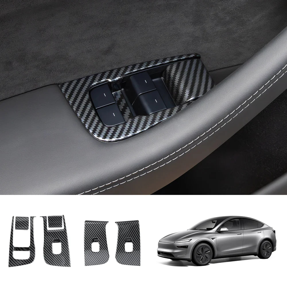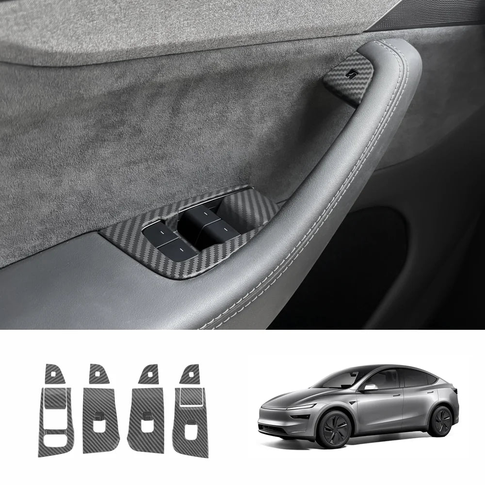 Enhance the interior of your Tesla Model Y Juniper 2025+ with this 10-piece Window & Door Button Trim Cover Set. Designed for a precise, OEM-style fit, these custom covers add a sporty, high-tech look while protecting your window lift and door lock buttons from daily wear. Crafted from durable ABS, they install quickly and securely with pre-applied adhesive—delivering an instant visual upgrade with zero hassle.