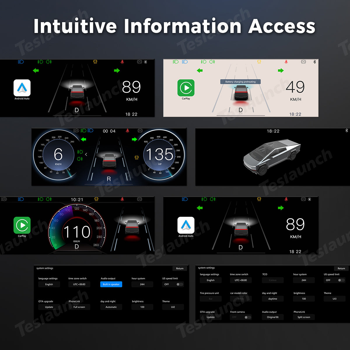 Upgrade your Tesla Cybertruck with the 8.9'' Head-Up Display (HUD), designed to enhance your driving experience with Wireless CarPlay and Android Auto integration. With its HD 2.5D screen, the display offers vibrant, clear visuals, minimizing eye movement for safer driving. Positioned directly above the steering wheel, it ensures critical information stays within your line of sight while optimizing airflow in your cabin. Supporting vehicle OTA upgrades (App-OTA & Protocol-OTA), this HUD continuously enhances system performance, compatibility, and features.
