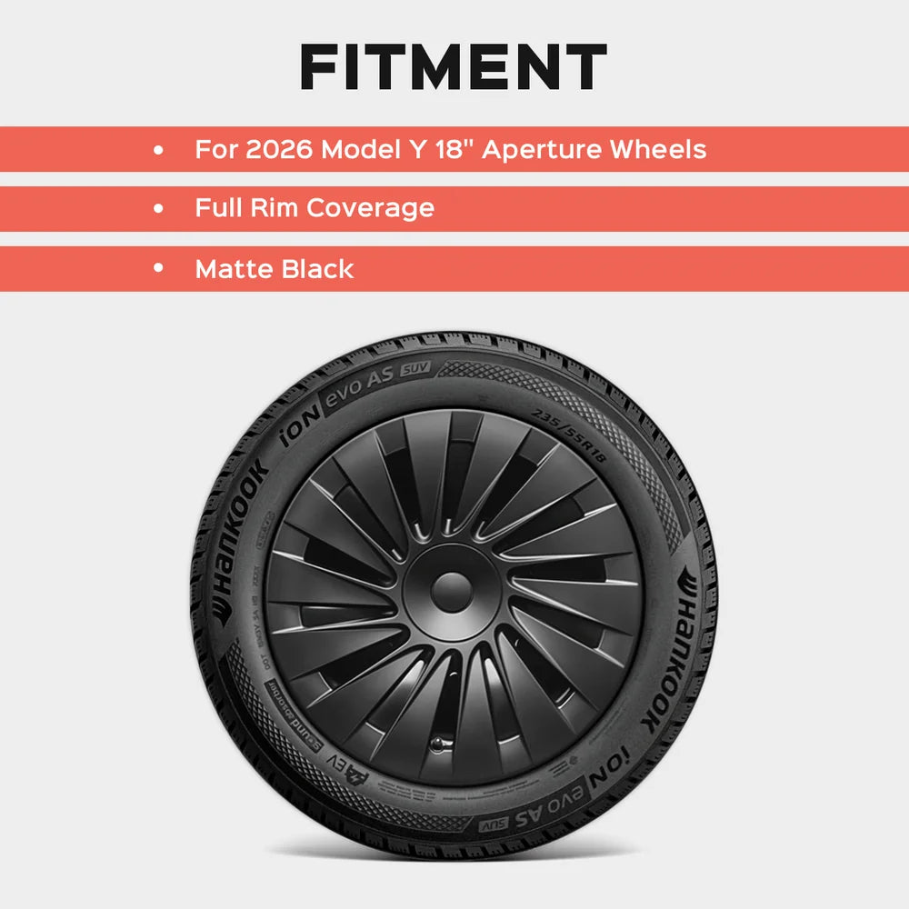 • Perfect Fit for Model Y (18" Aperture Wheels): Custom-engineered for the 2026 Tesla Model Y with 18" Aperture Wheels. Designed to match the original wheel dimensions precisely for a secure, factory-like fit and seamless integration.
