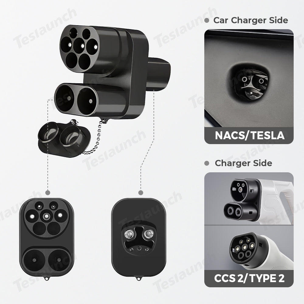 Our CCS2 to Tesla DC+AC Adapter is the ultimate solution for charging your US Tesla vehicles in Europe. Say goodbye to carrying multiple adapters because our latest innovation combines fast DC and AC charging capabilities into one convenient device. With this adapter, you can easily charge your Tesla at any CCS2 Combo public charging station, which are widespread across Europe.