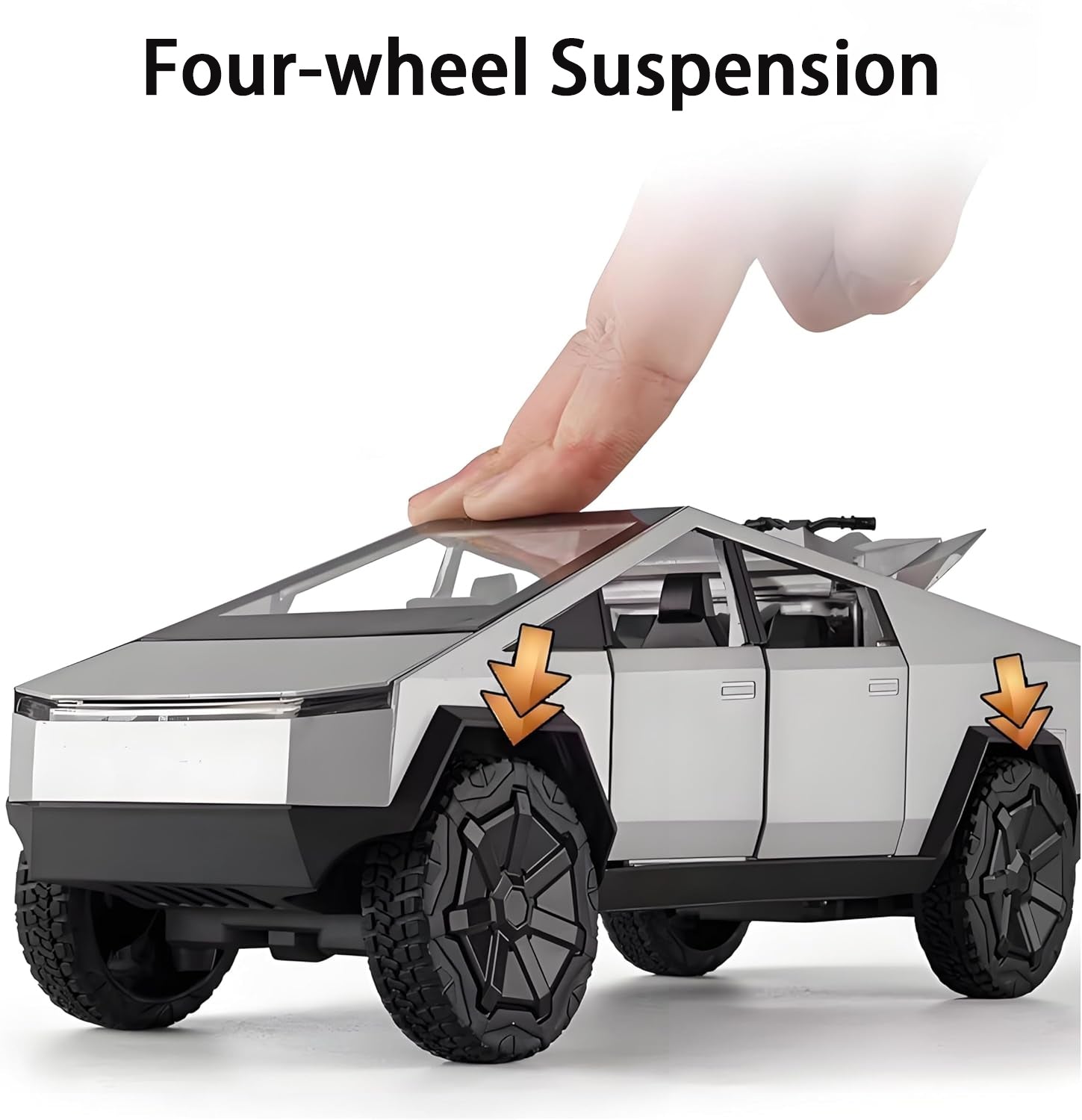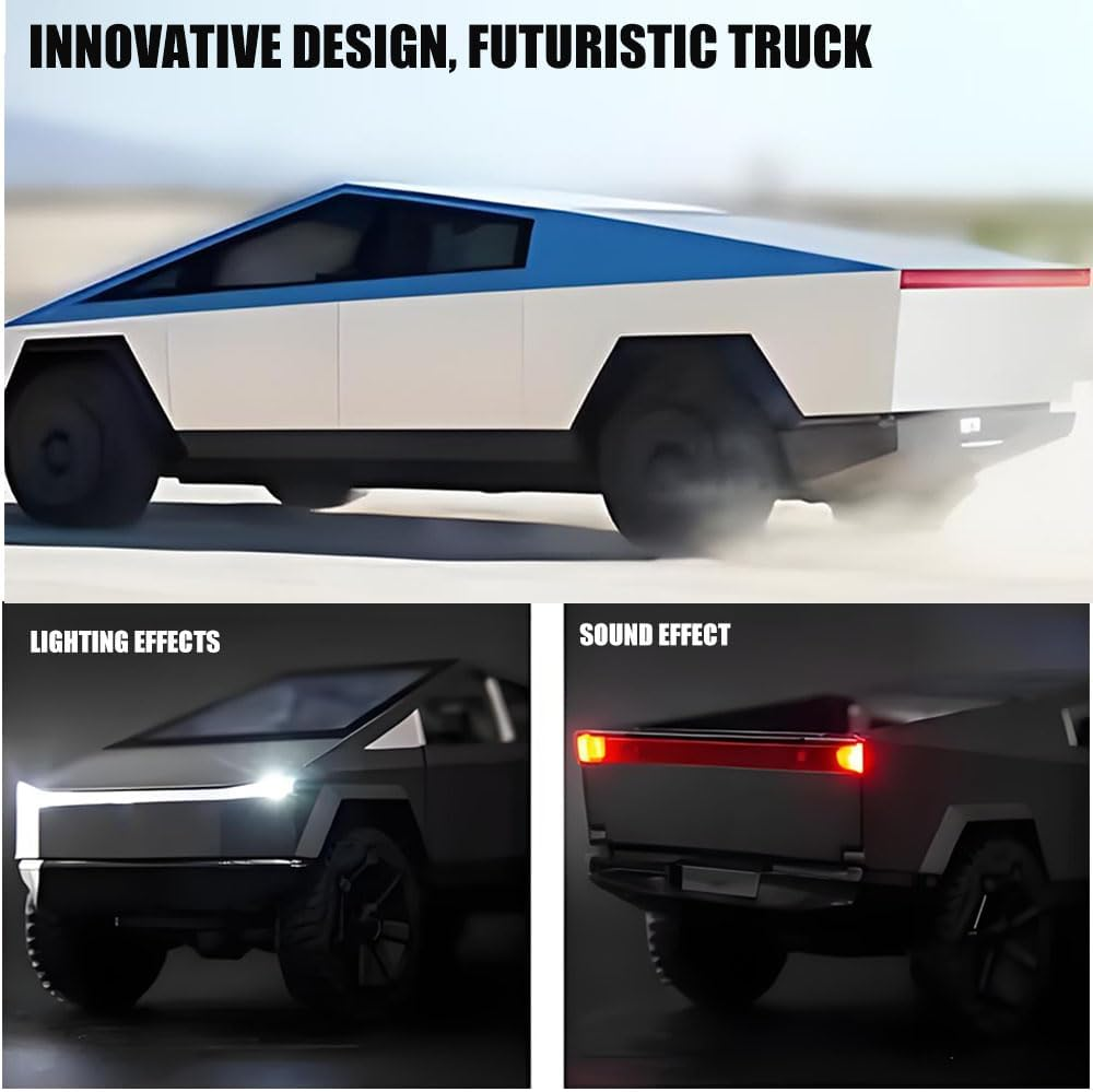 The Cybertruck Model Pickup Truck 1/24 Toy is a meticulously crafted miniature replica of the iconic Tesla Cybertruck. This detailed model offers collectors and enthusiasts a chance to own a piece of the future in a compact and display-worthy form. Also the best Halloween and Christmas gift for Kids and Tesla lovers.