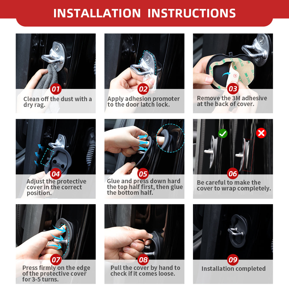• Protect your expensive Tesla Model 3/Y's door lock from rusting and damage with our noise-reduction door latch lock cover, ensuring long-lasting durability and peace of mind.