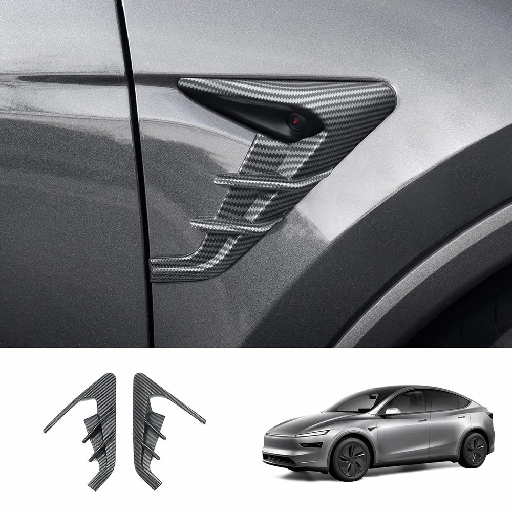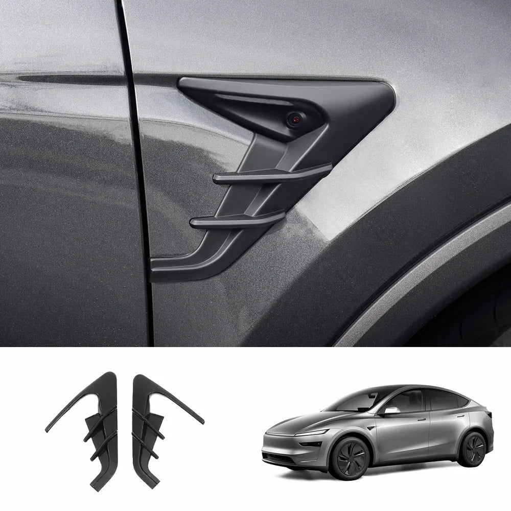 These ABS turn signal and camera covers are designed for the Tesla Model Y Juniper 2025+, combining protection and style. Made from high-strength ABS, they are lightweight, impact- and scratch-resistant, and UV- and weather-resistant. The Air Blade design enhances the sporty look while guiding airflow around the front wheels. Easy, no-drill installation ensures a perfect fit over original turn signals and side cameras, adding style without affecting functionality.