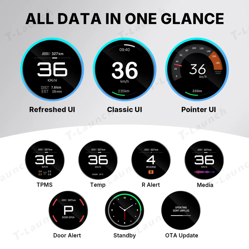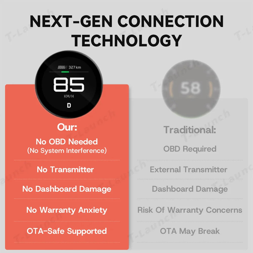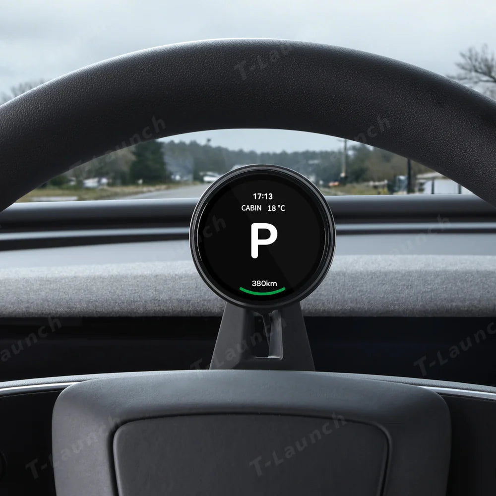 Atualize o seu Tesla Melhore a sua experiência de condução com este Mini Display HUD Inteligente sem fios para Tesla Model 3 Highland 2024+ e Model Y Juniper 2025+. Instalado logo atrás do volante, exibe em tempo real a velocidade, a mudança engrenada, a pressão dos pneus e os alertas do veículo, para que se possa manter concentrado na estrada sem ter de estar constantemente a olhar para o ecrã central.