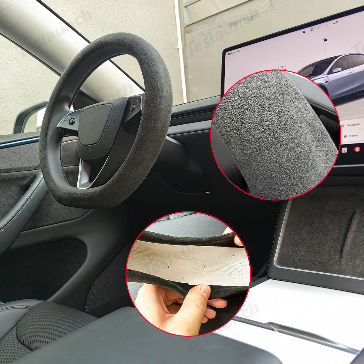 • Product Highlight: Alcantara Full Cover for Tesla Model 3 and Y – Soft to the touch, this cover ensures that your hands won't slip during aggressive turns or long trips.