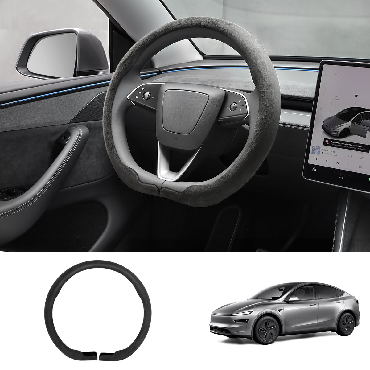 Different Tesla models have unique steering wheel designs. To ensure the best fit, it's important to choose a steering wheel cover specifically designed for your vehicle's model. For example, the Alcantara U-shape cover is designed for seamless integration with the Tesla Model Y Juniper 2025+, offering a snug fit and enhancing the overall aesthetic of the interior.