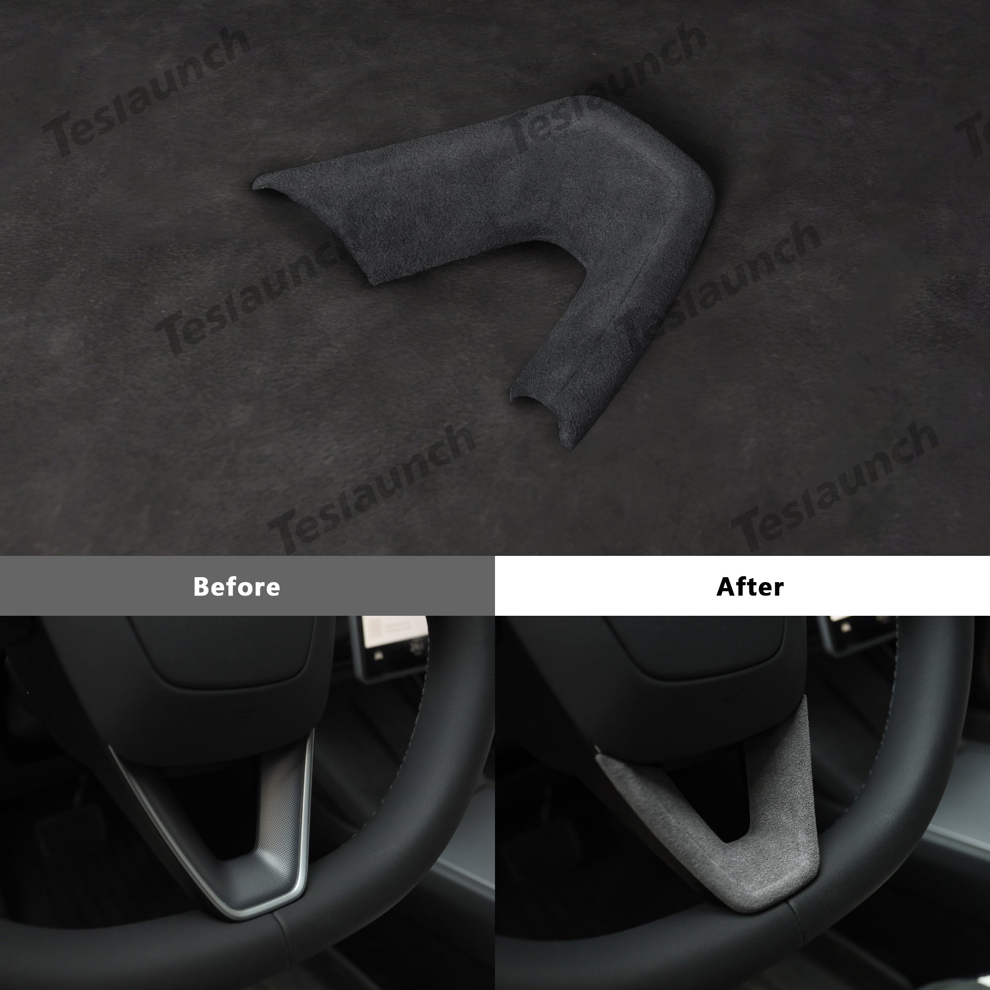 Protect your Tesla's Steering wheel with the Tesla Steering wheel U-shaped cover Cover. Made from premium Alcantara material, this cover provides a luxury feel to your Tesla's interior while also protecting your console from scratches, scuffs, and other damage. This cover fits perfectly and provides full coverage, ensuring your console stays in pristine condition.