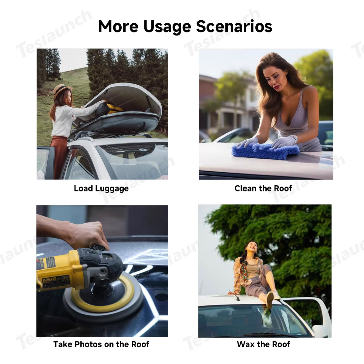 Accesul pe acoperiș este facil cu ajutorul treptei universale cu cârlig de acces pe acoperiș pentru toate mașinile - soluția all-in-one pentru încărcarea bagajelor de pe acoperiș, curățarea acoperișului mașinii sau gestionarea situațiilor de urgență. Această treaptă compactă, pliabilă, din aluminiu se agață în siguranță de zăvorul în formă de U al ușii mașinii dvs., oferind o platformă stabilă și ridicată. Concepută pentru versatilitate, durabilitate și siguranță, este accesoriul auto indispensabil pentru călătorii rutiere, utilizare zilnică sau situații de urgență. Având caneluri antiderapante și o bază de contact protejată cu silicon, această treaptă asigură că atât stabilitatea, cât și vopseaua vehiculului dvs. rămân intacte.