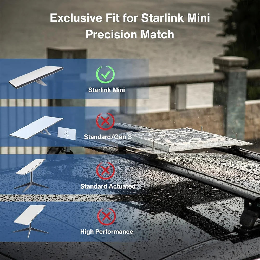 Designed specifically for your Starlink Mini, this T-Slot Roof Rack Mount features a high-strength stainless steel frame and an impact-resistant PC shell to fully protect your device. It ensures reliable protection in harsh weather and accidental impacts during transport, installation, and everyday use. Compatible with M6 rails and the M6 2080 system, this roof rack mount offers an adjustable spacing range of 38-48cm for flexible and secure installation.