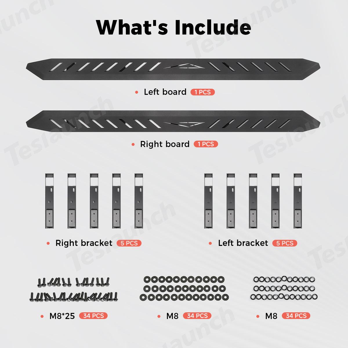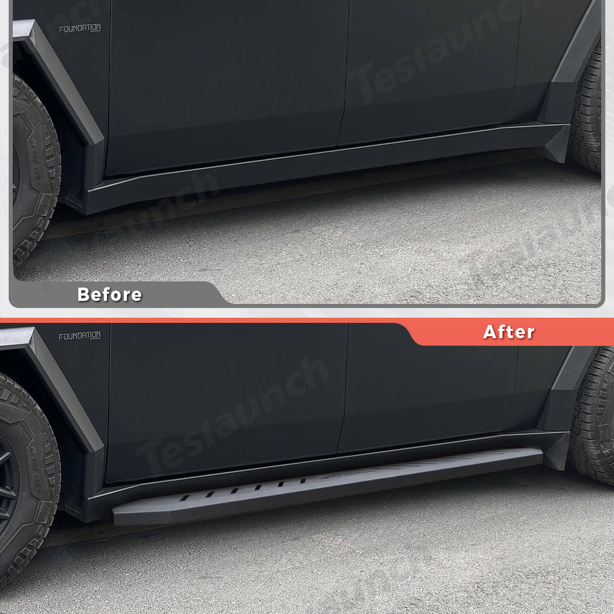 The Tesla Plăcile de rulare Cybertruck, cunoscute și sub numele de bare Nerf sau trepte laterale, oferă atât funcționalitate, cât și stil. Proiectate special pentru Cybertruck robust, oferă acces mai ușor la vehicul, siguranță îmbunătățită și un aspect elegant și durabil.